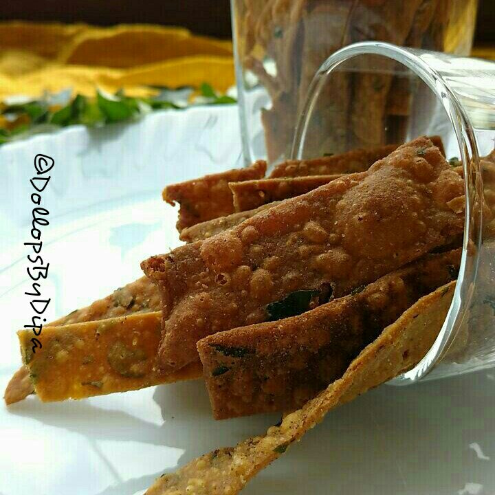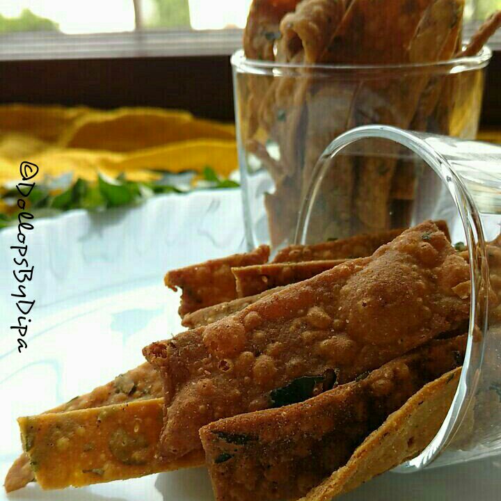 We all love tea time fried snacks. Many of our favourite namkeens are made from all purpose flour ( maida). Here I tried multi grain flours to make these sticks & use curry leaves. As we all are aware of health benefits of curry leaves. The main nutrients found in curry leaves are carbohydrates, energy, fibre, calcium, Phosphorus, iron, magnesium, copper & minerals. It also contains various vitamins like nicotinic acid & vitamin C, vitamin A, vitamin B, vitamin E, antioxidants, amino acids, glycosides & flavonoids.