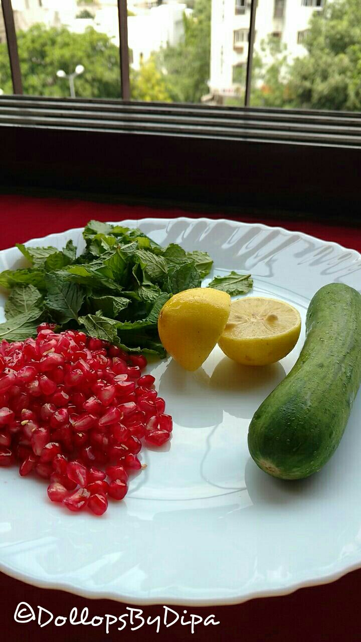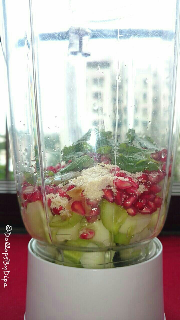 Goodness of cucumbers & pomegranate are combined with mint leaves, made this punch refreshing & yummy too.