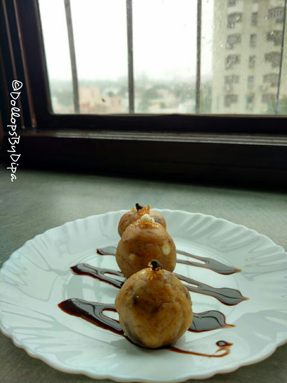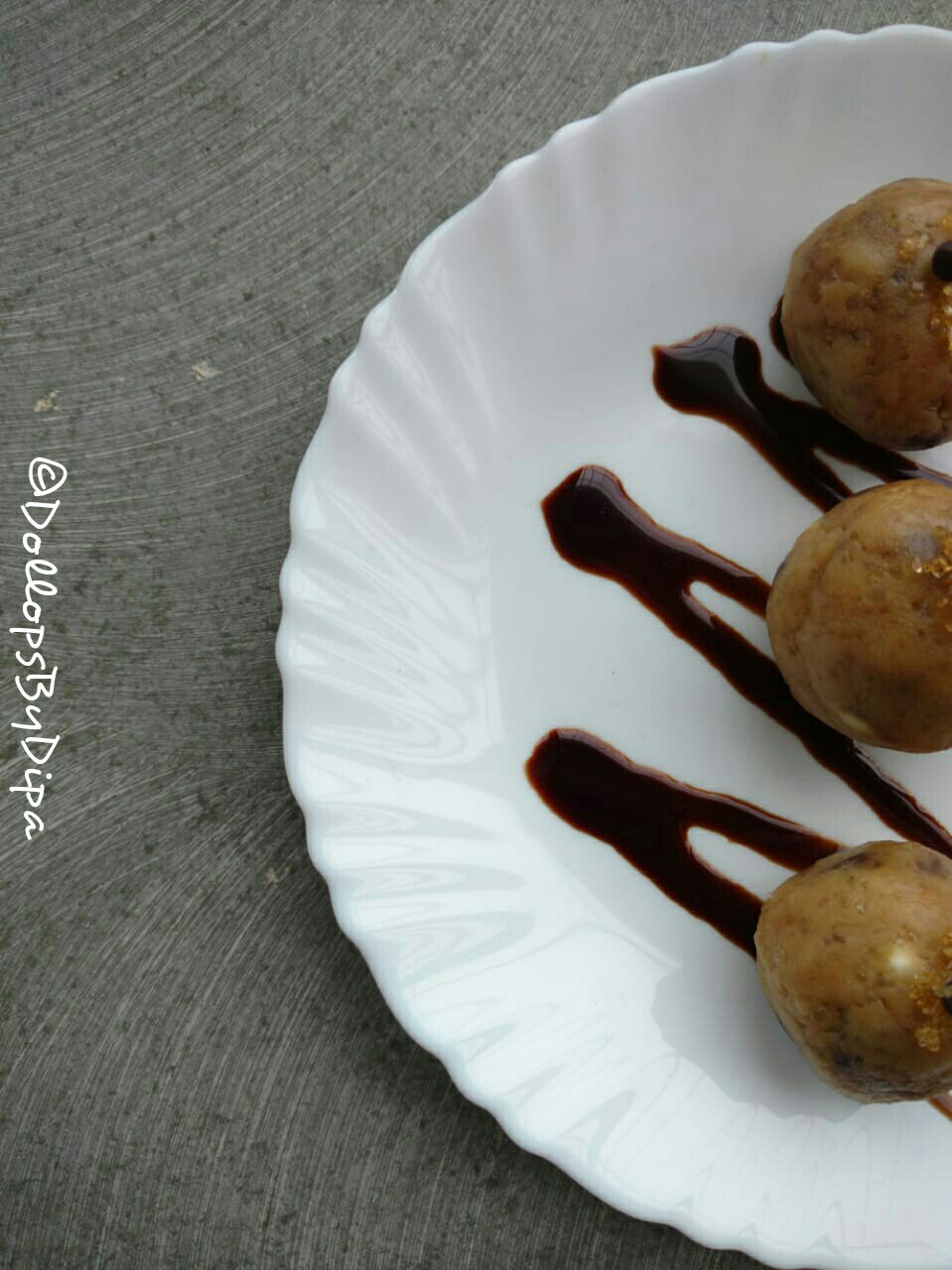 3. Add chocolate chips & mix well. Now take little dough in hand & make balls out of it.
