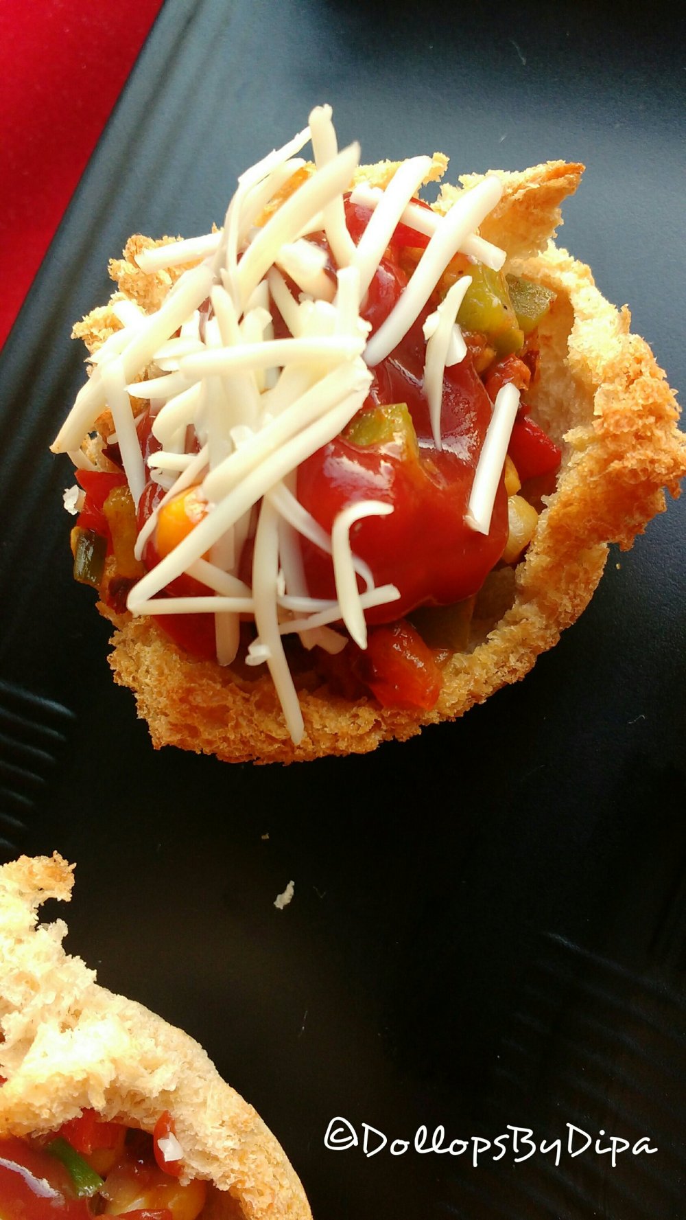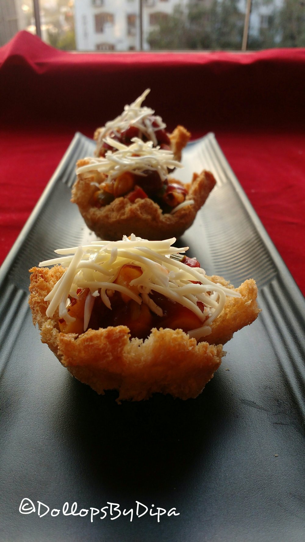This Mexican starter is suitable for any party cause you can make bread tartlets in advance. I stuffed these tartlets with veggies & corn, which means ” Taste + Health ” . Hope you all like this hassel free starter , which is easy to serve & satisfy taste buds too.