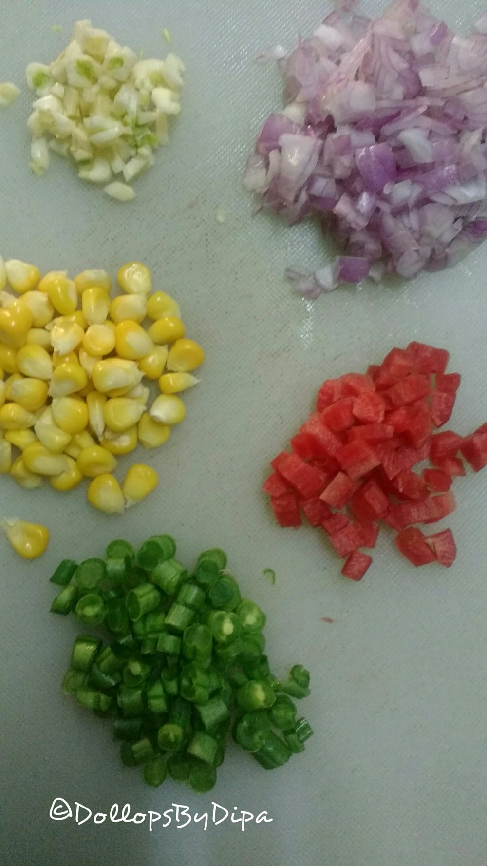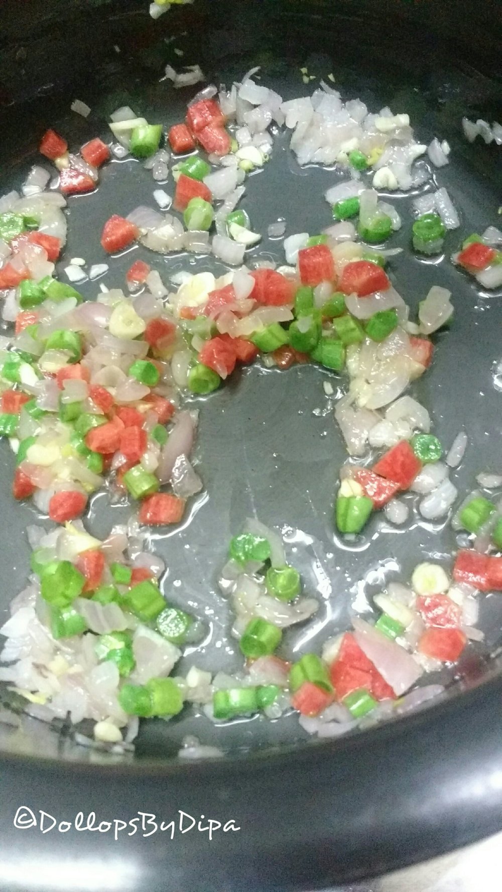 3. Now in a pan, heat butter, sauté onion & garlic for 1-2 minutes than add carrot & french beans , sauté for 2-3 minutes.