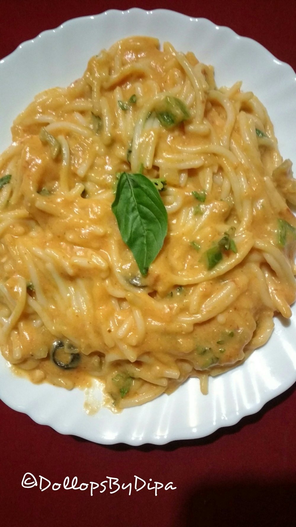 Spaghetti is long, thin & cylindrical & is a staple food in traditional Italian Cuisine. It is boiled & used with different gravies , sauces & vegetables. Here I have made spaghetti in pink sauce that is red + white sauce together.
