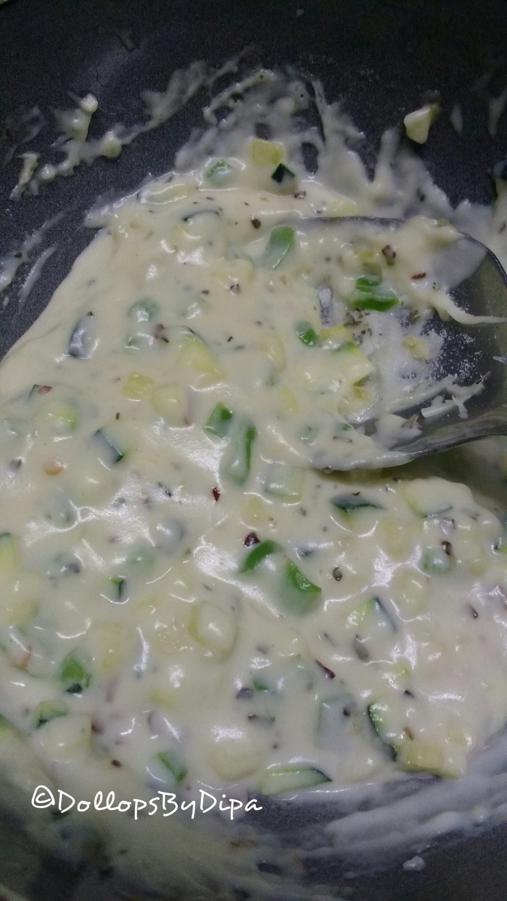 2. Now add white sauce, seasoning & salt & mix well. Turn off heat after 2 minutes, stir continuously.