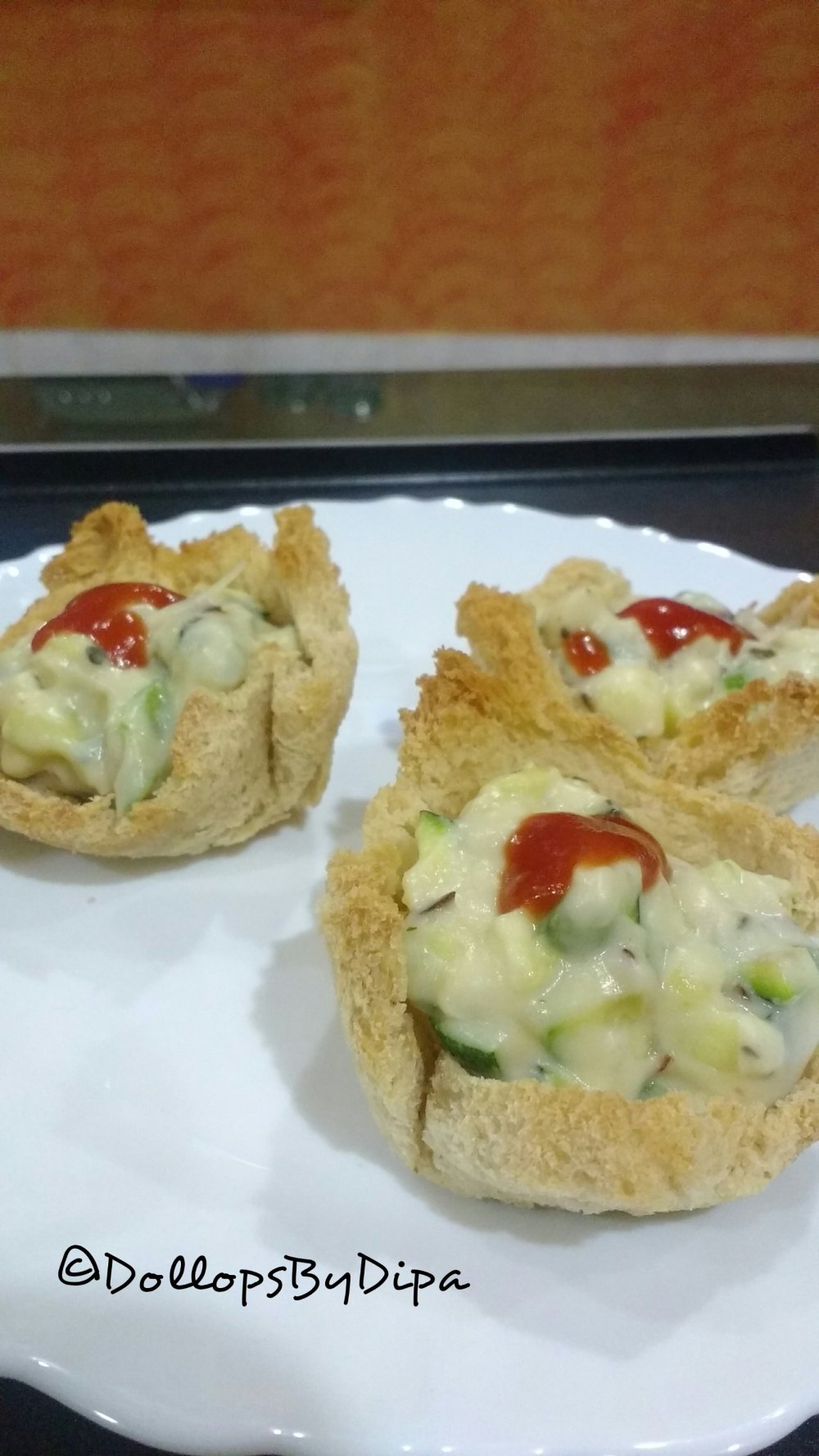 Here, I prepared simple yet yummy filling/dip using Zucchini,which can be chosen for any chips, bread. I filled bread tarts with it.