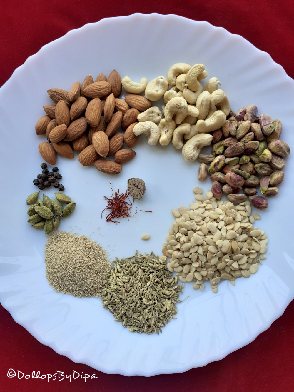 Colourful Holi festival is in air, and as it is celebrated in many parts of India, still Gujarat & Rajasthan is on the top. Holi festival is incomplete without thandai. Thandai is cold & chillen milk with various succes & nuts, which can be made by ‘ ‘ soak & paste ‘ method but now a days its time for ‘ ‘ ‘Quick & Instant ‘ . So here are an aromatic spice blend to prepare instant thandai.