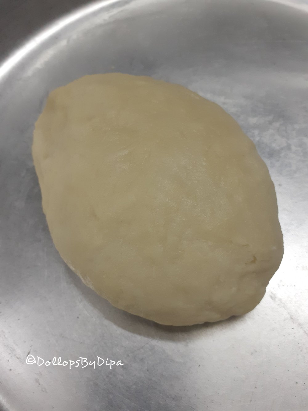 1. Add ghee in flour & mix with hand,now add sugar water & knead medium hard dough.