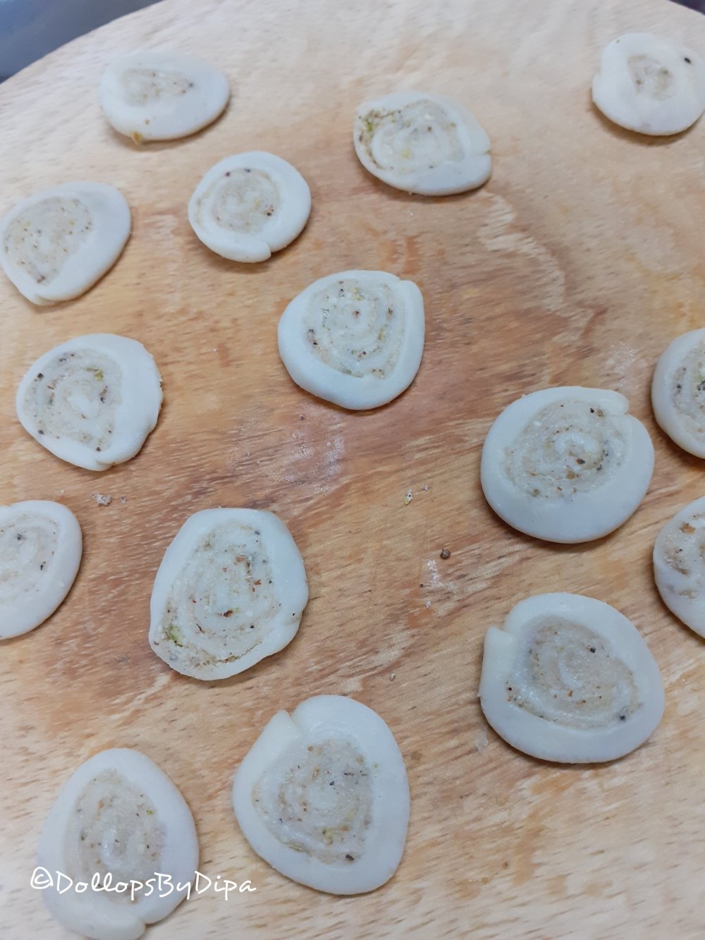 5. Now cut medium sized pieces from that roll, press all the pieces with hand .
