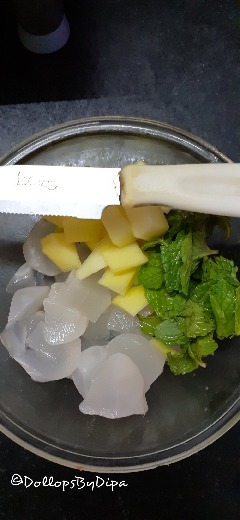 1. Peel & chop both ice apple & raw mango.