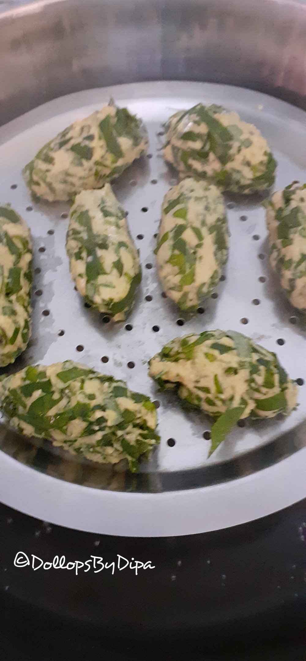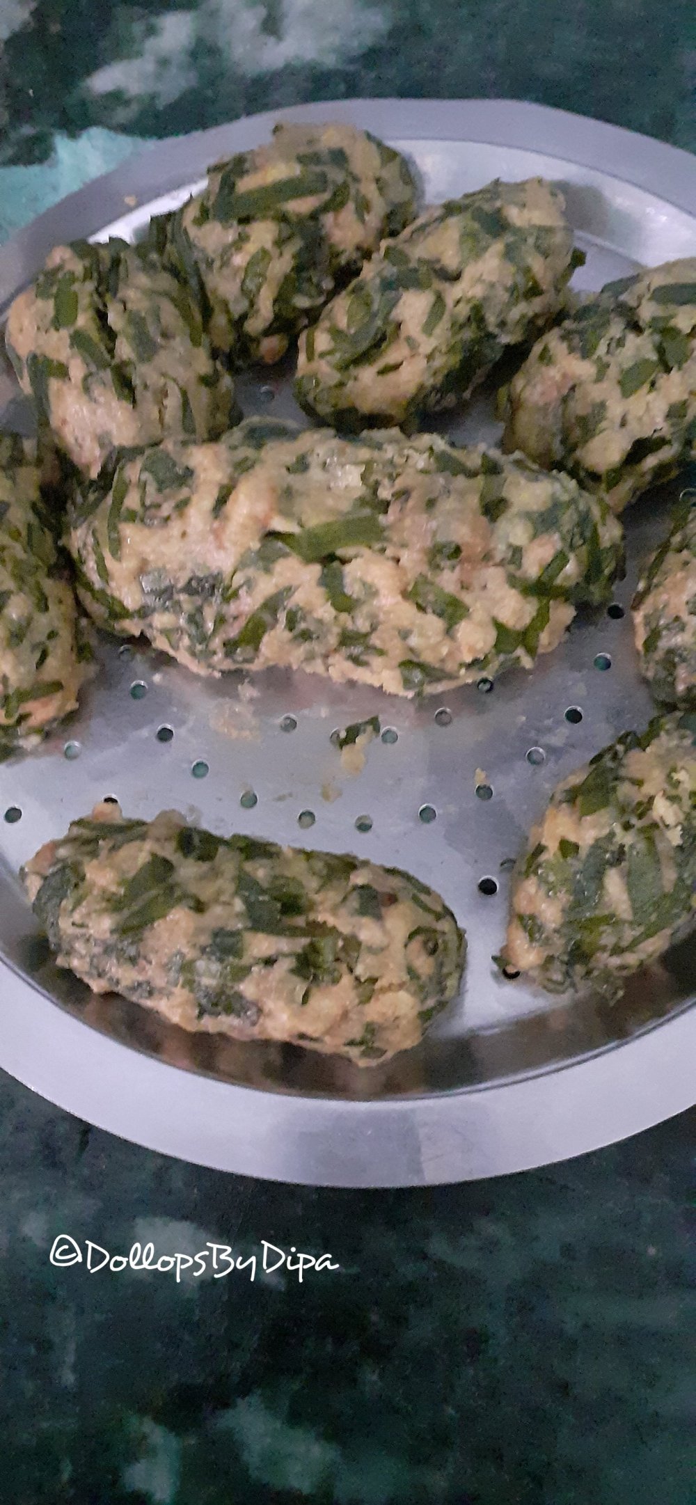 3. Now make small oblong dumplings ( muthiya ) from it & cook it in steam like dhokla.