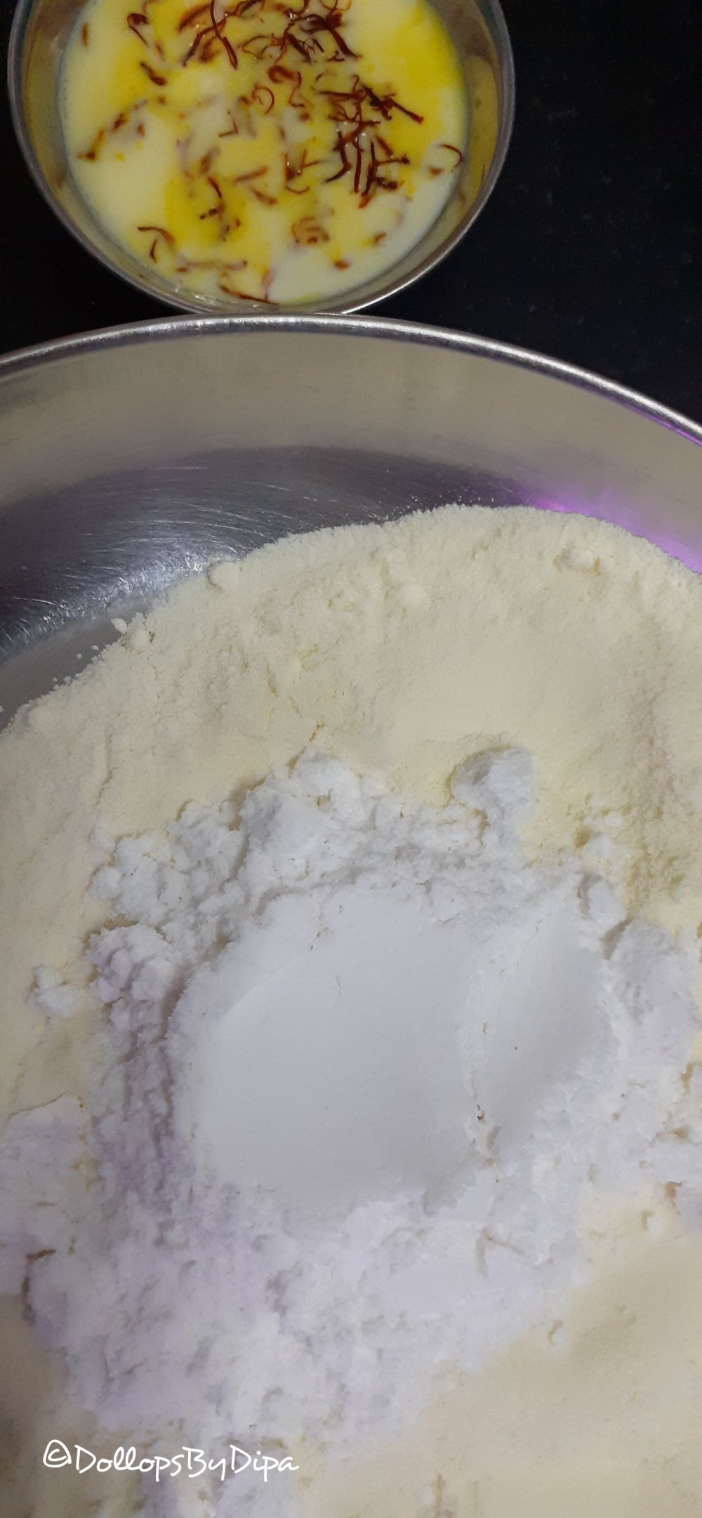 2. Then mix milk powder, sugar and saffron milk & then fill it in piping bag, make spiral in serving plate & keep it in refrigerator for some time.
