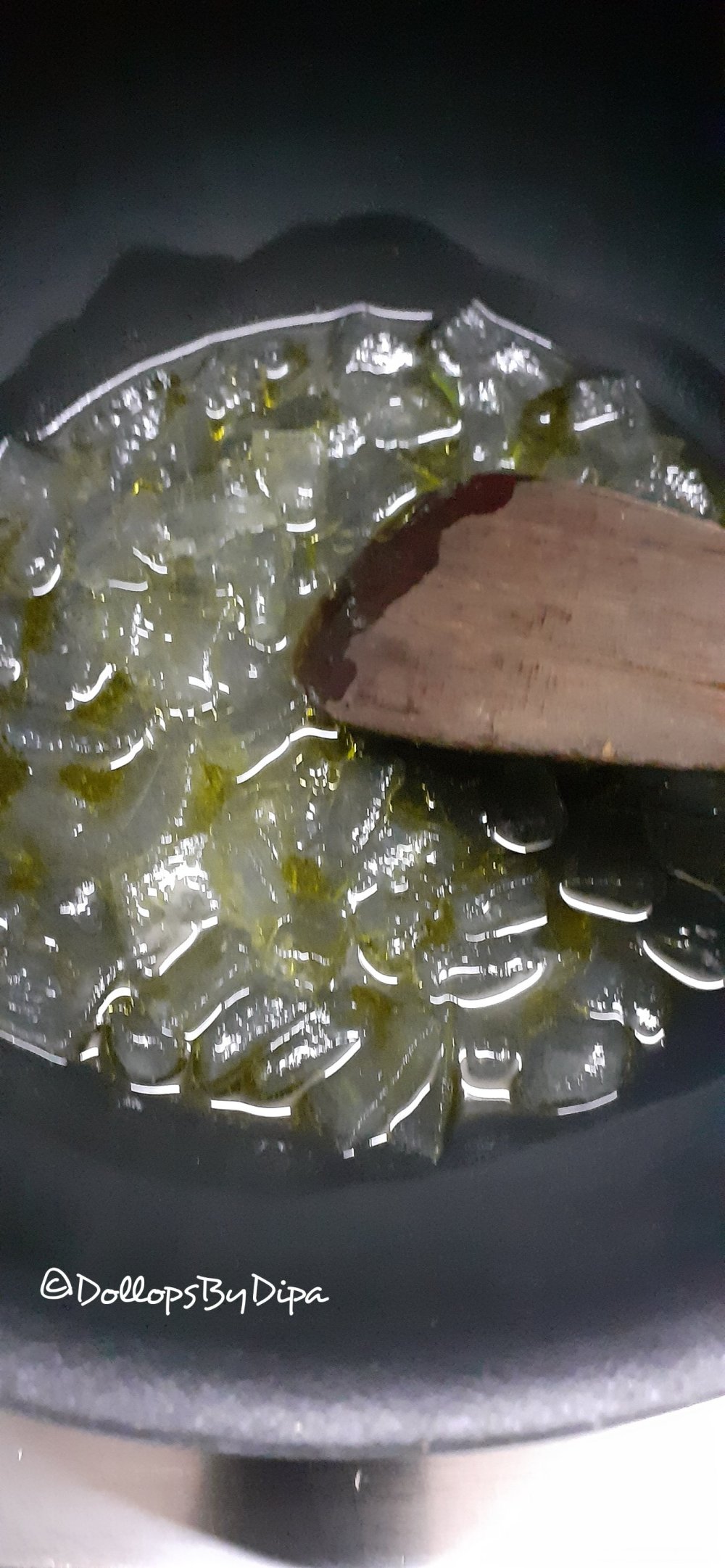 1. Heat ghee in non stick pan saute aloe vera till it becomes light brown.