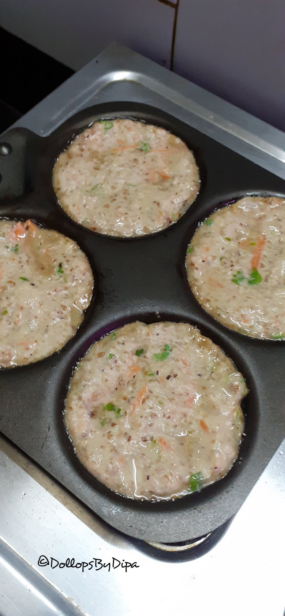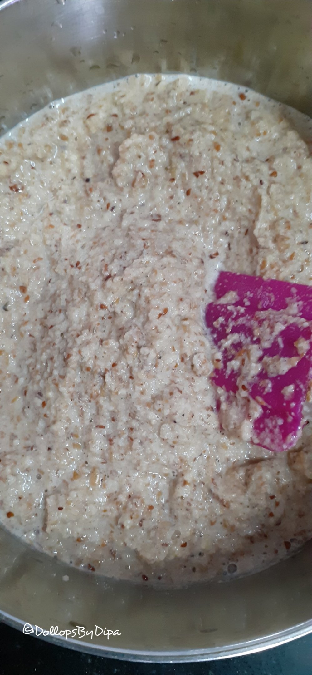 1. Grind soaked horse gram & add rice flour, semolina, oats & curd. Mix well.