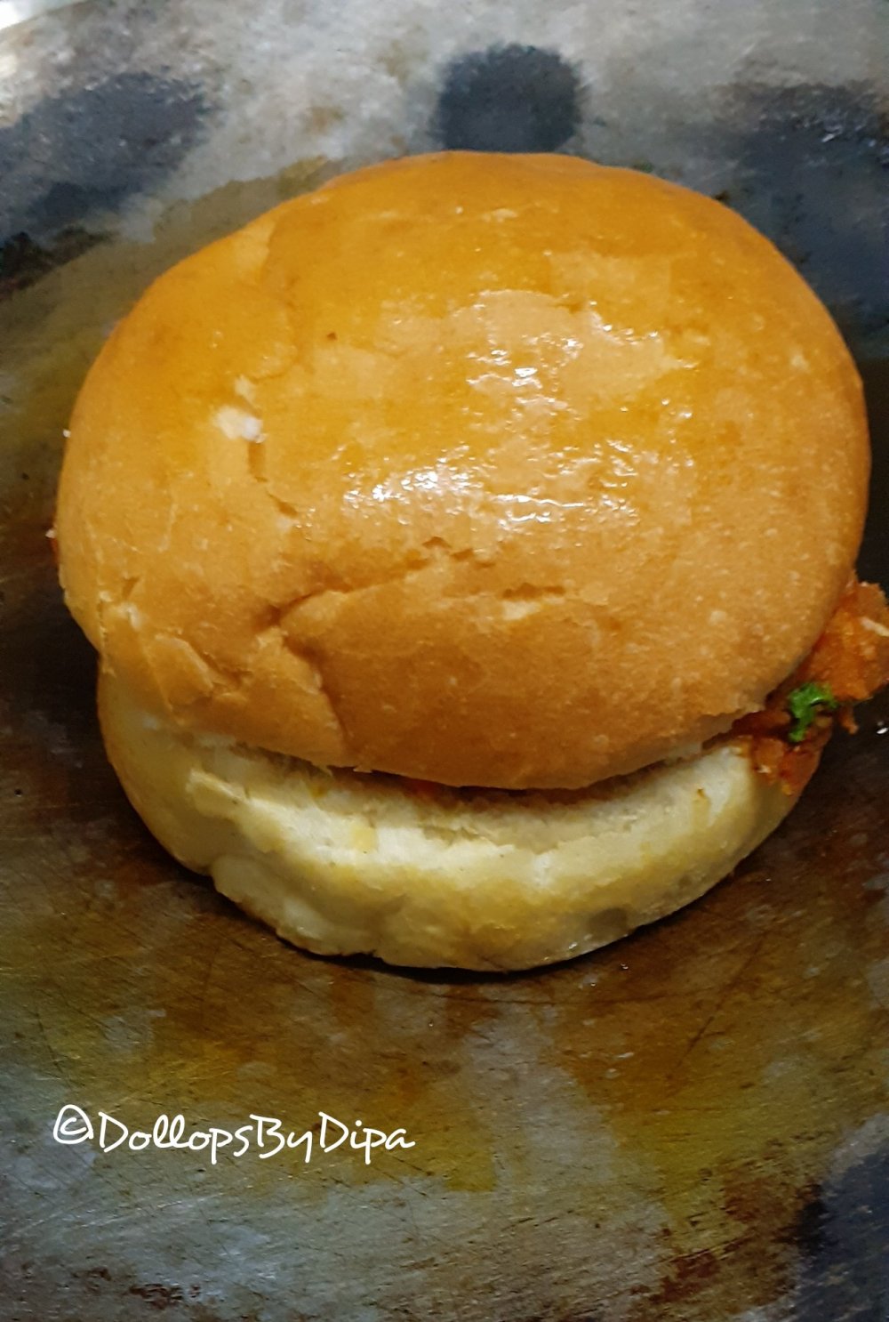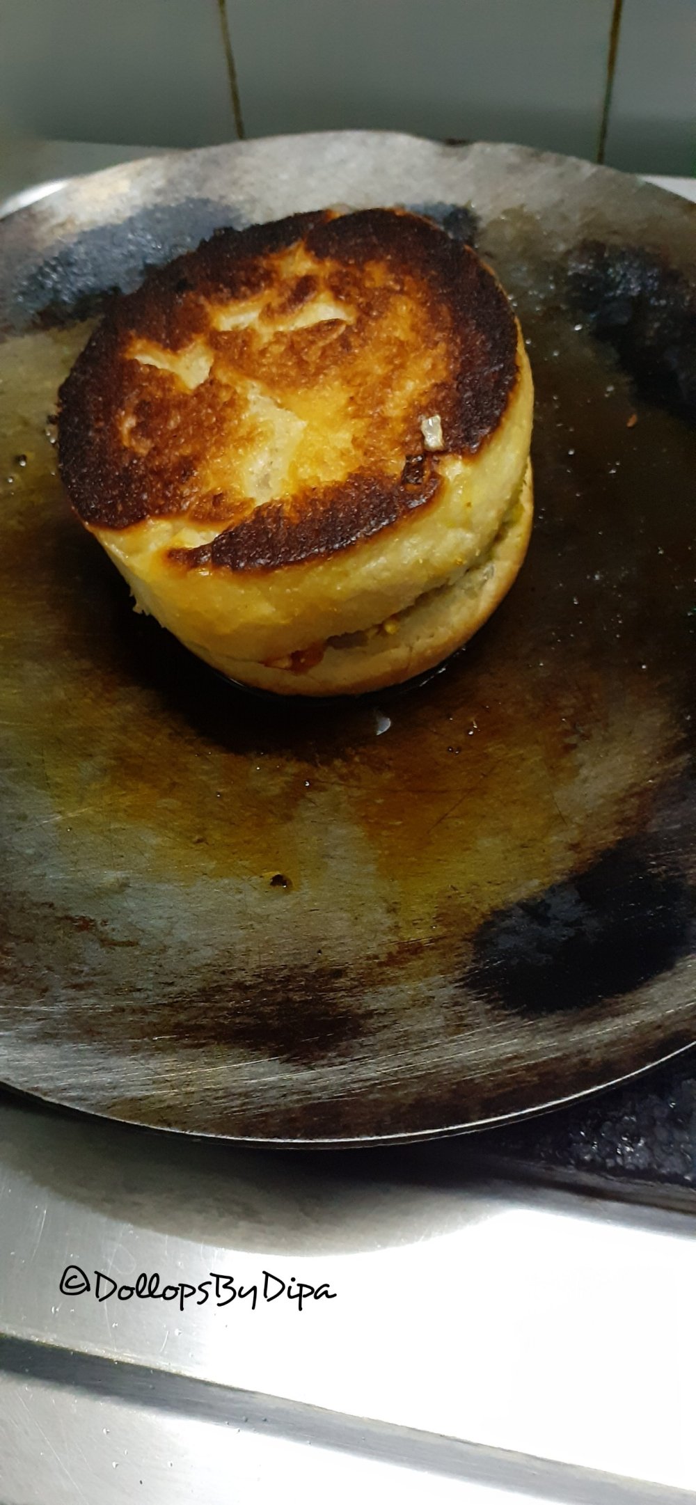 4. Now on a pre heated skillet, toast this dabeli from both sides with butter.