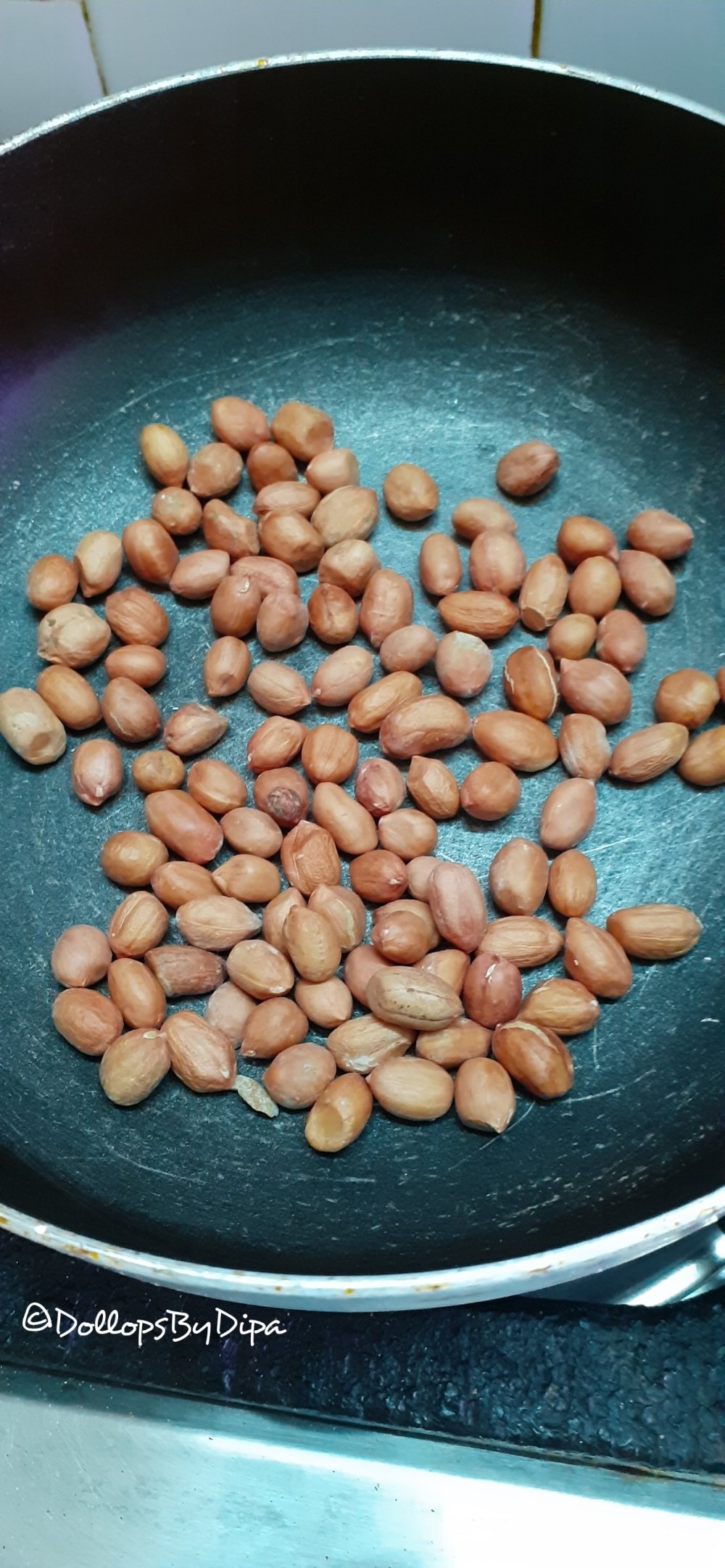 1. Dry roast peanuts, once cool down remove it’s skin with rubning palm. Then grind it in coarse powder.