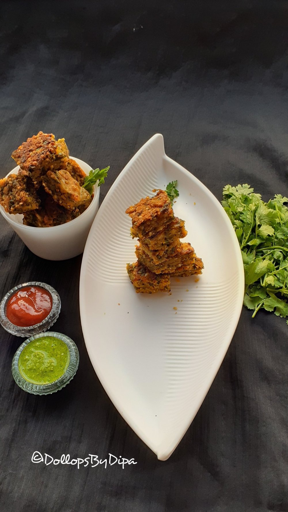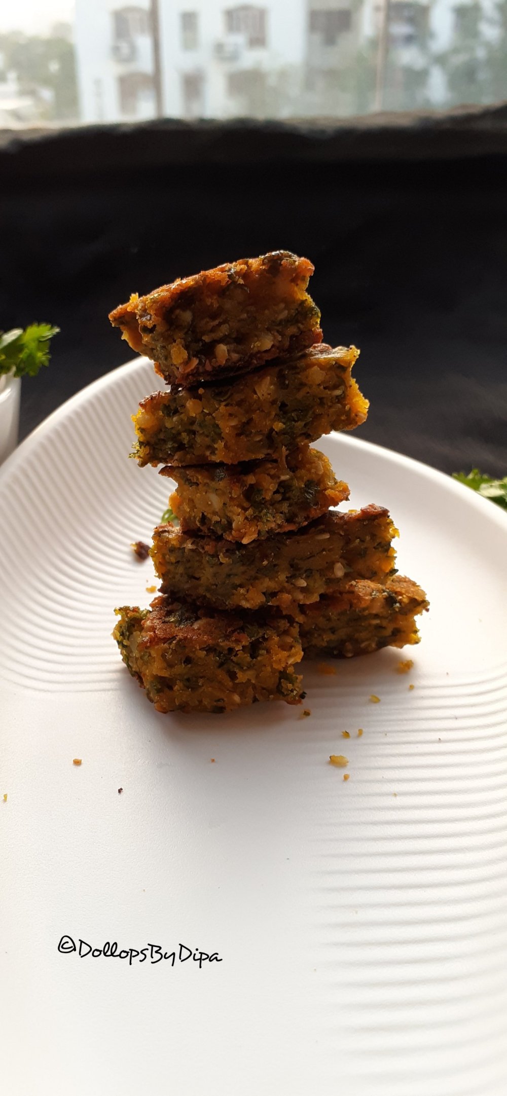 Kothimbir vadi is a delicious savory crispy snack made with gram flour & coriander leaves as key ingredients. In Marathi language “Kothimbir” means kothmir aka coriander leaves & “vadi” means cubes or wedges.