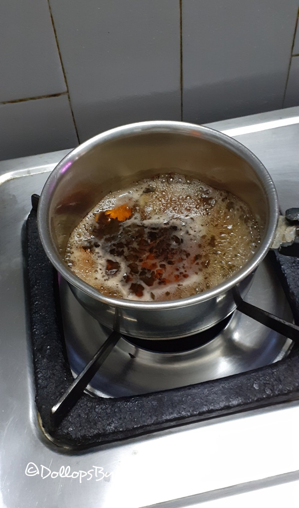 1. In a sauce pan, add tea & one cup water and let it boil. Once it starts boiling add baking soda and let it boil.