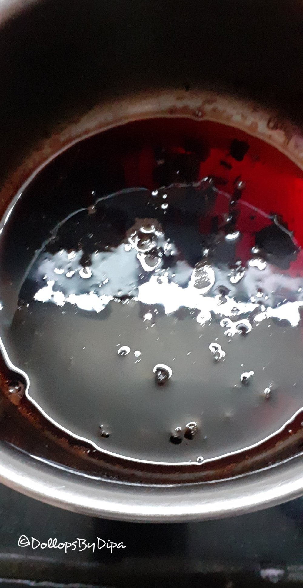 4. When you notice colour of tea deep reddish brown , take 1 tbsp of boiling tea in a bowl and add few drops of milk. If the colour changes to pink, then it’s right time to add milk, else boil for more few minutes.
