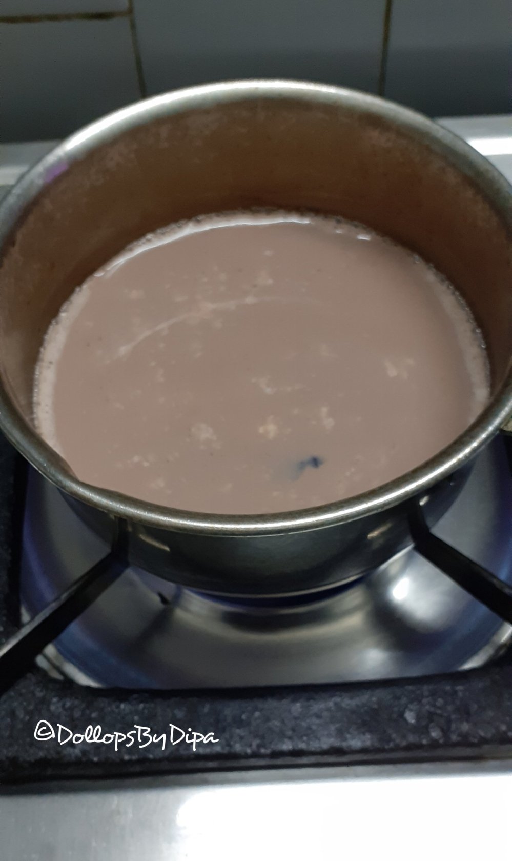 4. When you notice colour of tea deep reddish brown , take 1 tbsp of boiling tea in a bowl and add few drops of milk. If the colour changes to pink, then it’s right time to add milk, else boil for more few minutes.