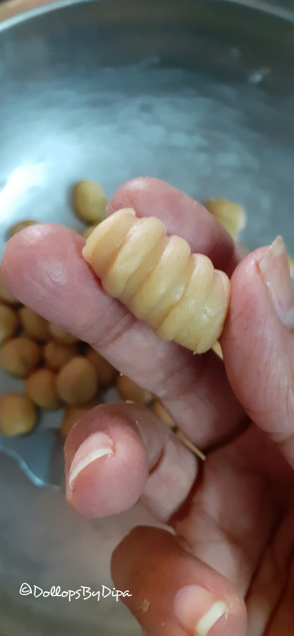 5. You can see the fork design on it. Repeat & complete all the balls & prepare the kulkuls.