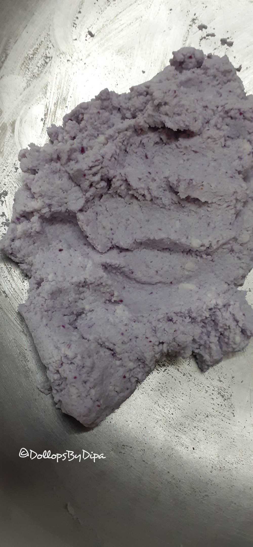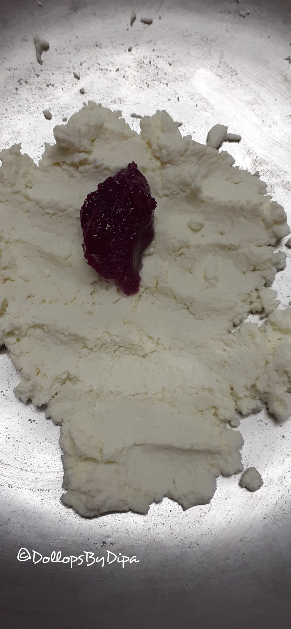2. Then mix 1.5 tbsp jamun pulp in it . Knead for few seconds.