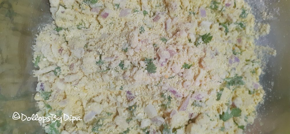 2. To prepare stuffing, mix all stuffing ingredients well. You can sprinkle little warm water if the stuffing looks dry.