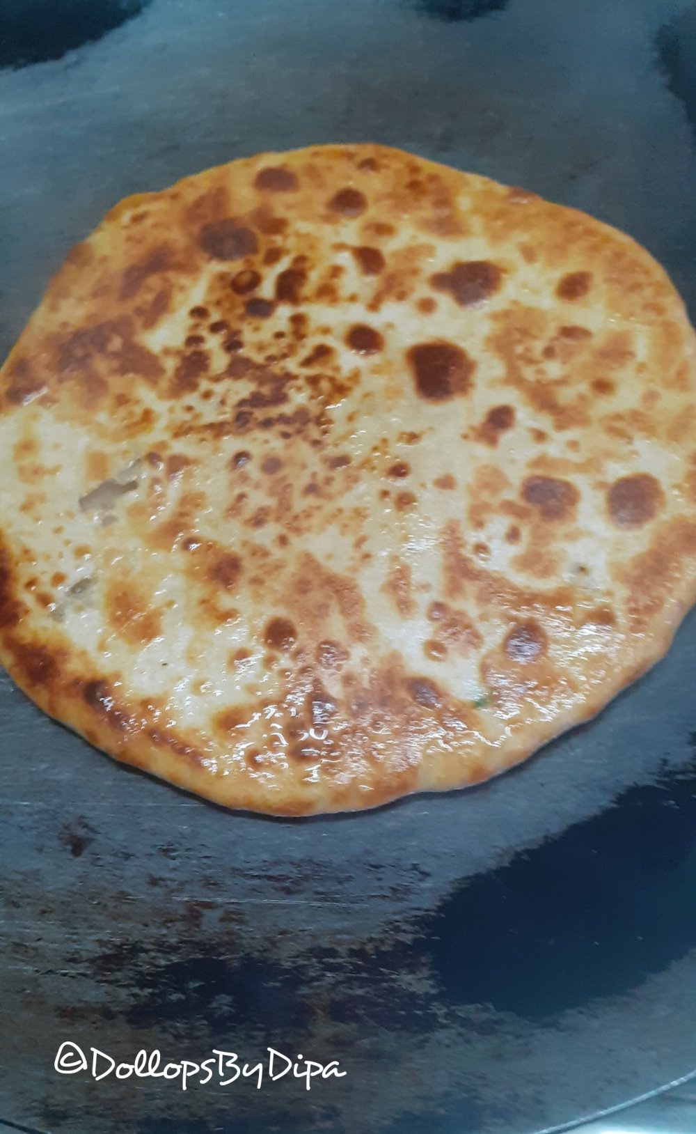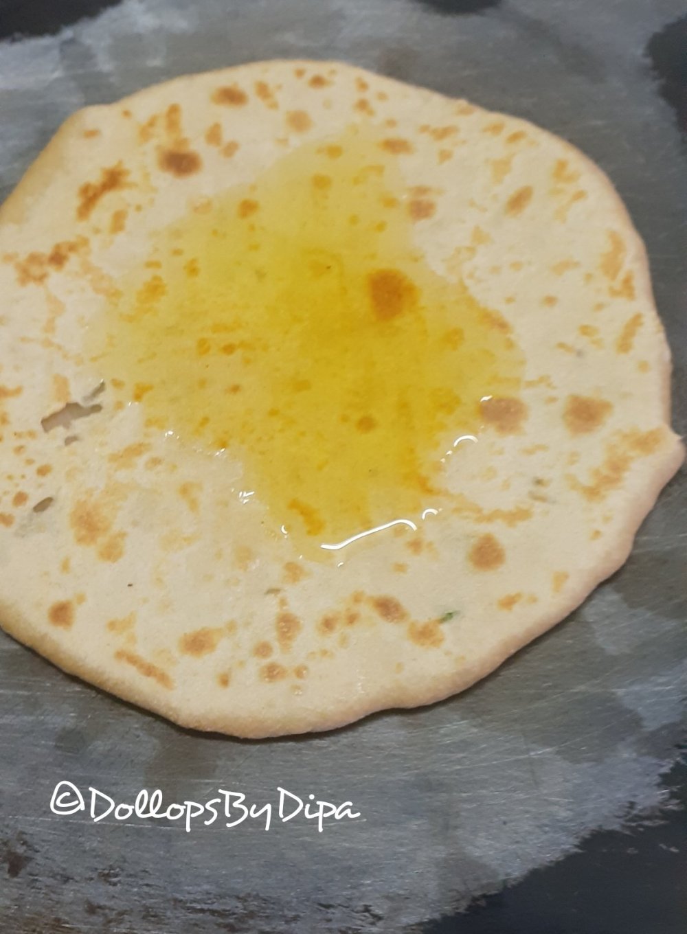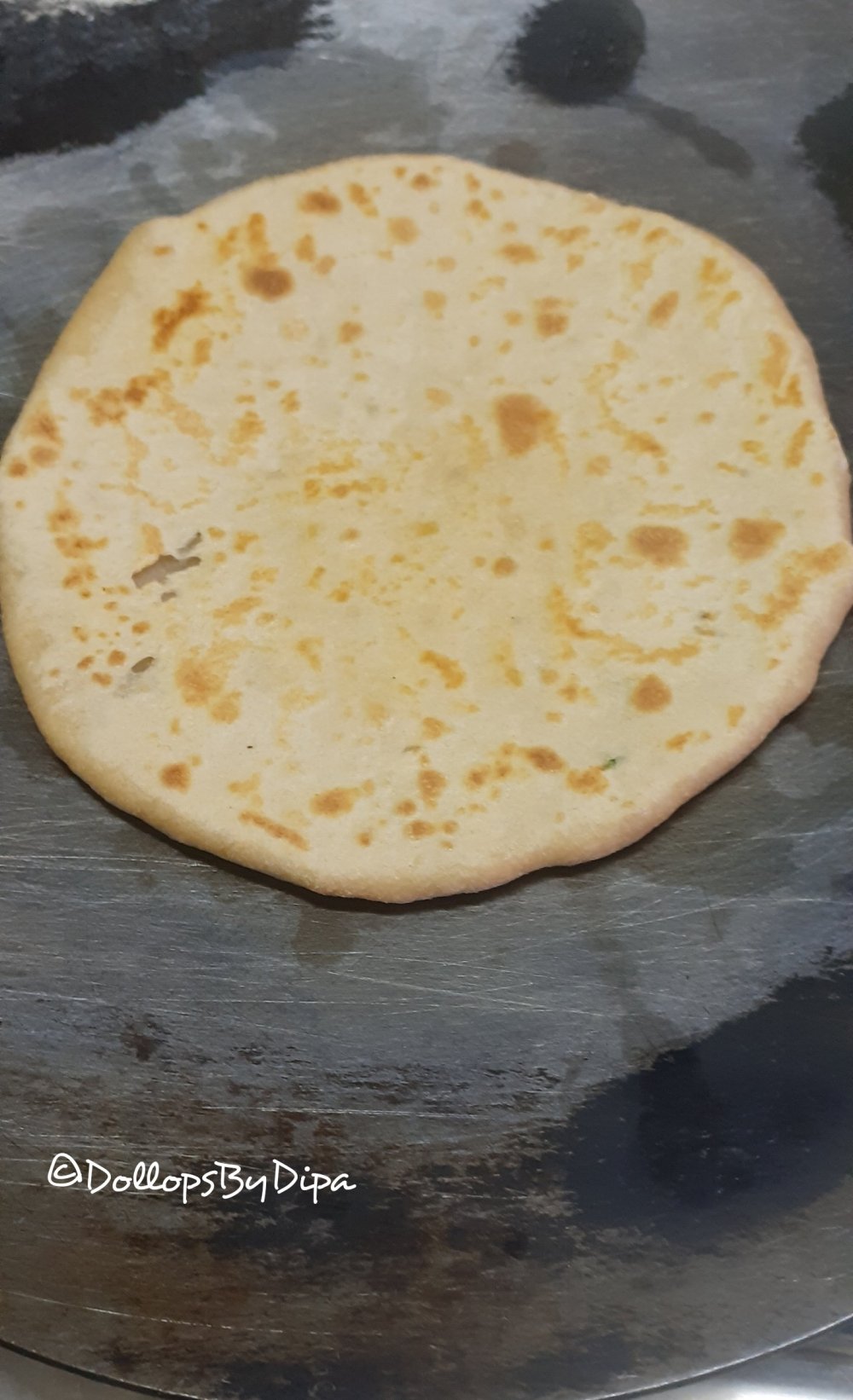 4. Now on preheated tava/skillet/ griddle cook paratha from both sides by adding ghee.