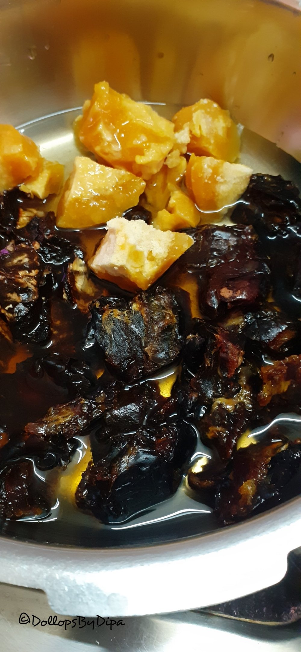 1. Wash dates & tamarind, add jaggery and one cup water & pressure cook it for 3 whistles.