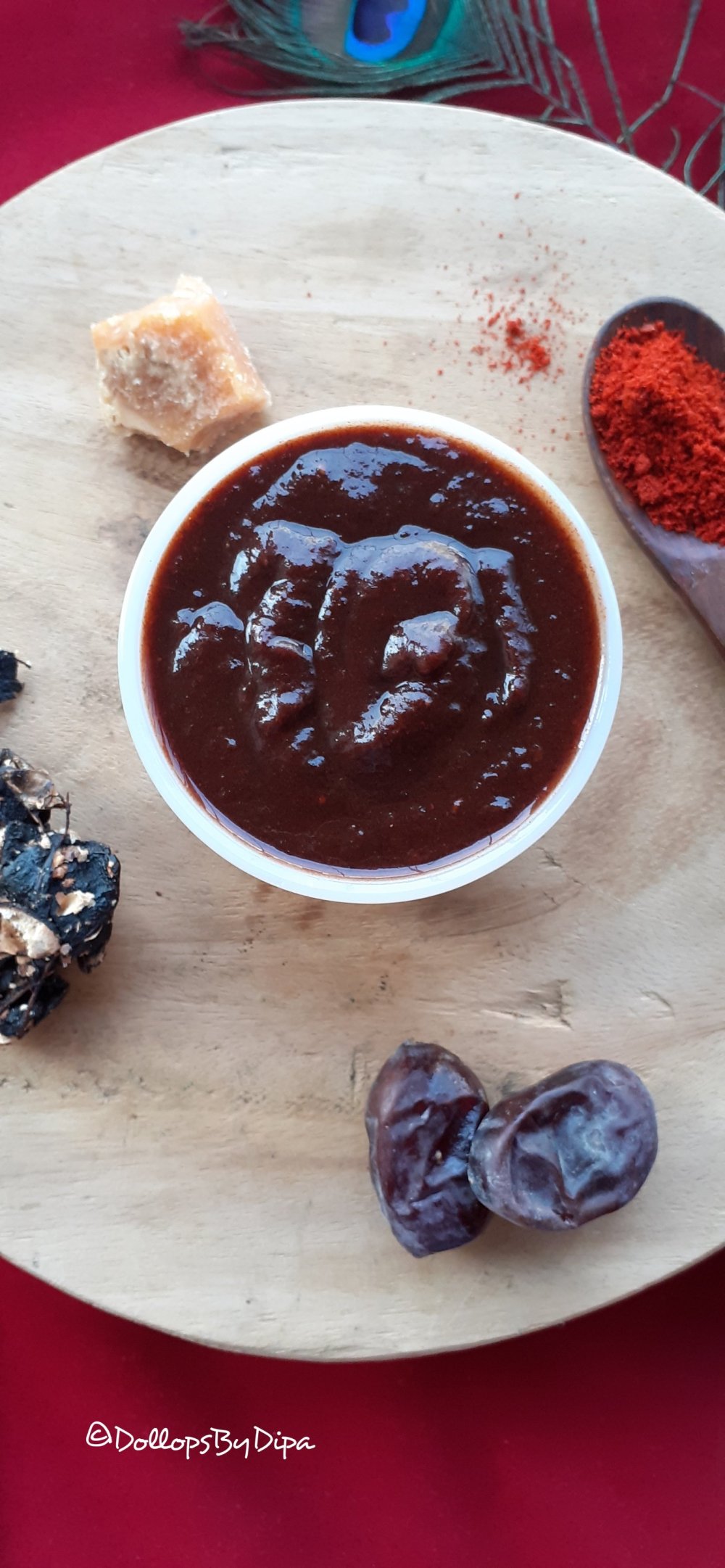This is very important & basic condiment in any Chaat Recipes. Actually we can’t imagine any chaat dishes without this sweet & sour chutney. The key ingredients of this chutney are iron rich dates & jaggery & tangy tamarind.
