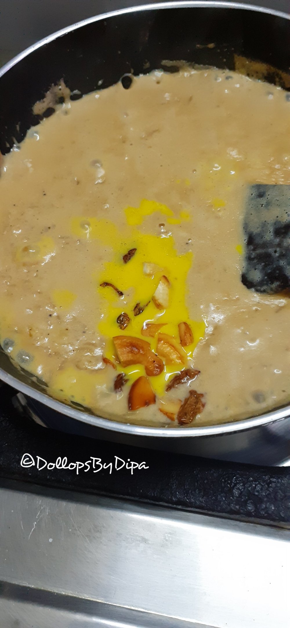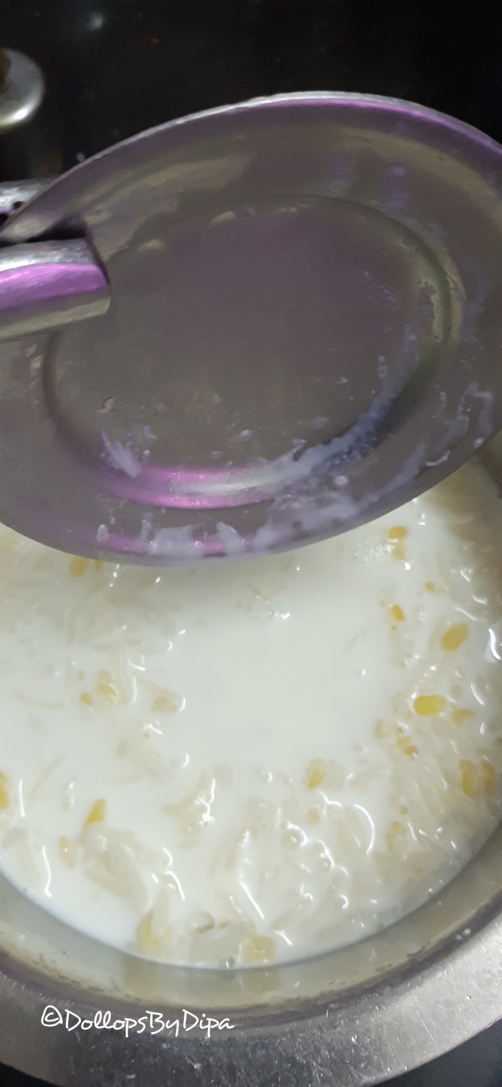 4. Make sure that milk rice dal mixture should only be half of the vessel to avoid boiling milk overflowing and also put small dish or bowl in it while pressure cooking it.