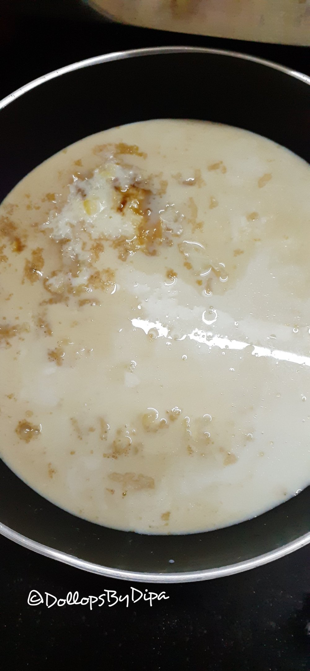 3. Now transfer it in another vessel , add 1.5 cup of milk in it.