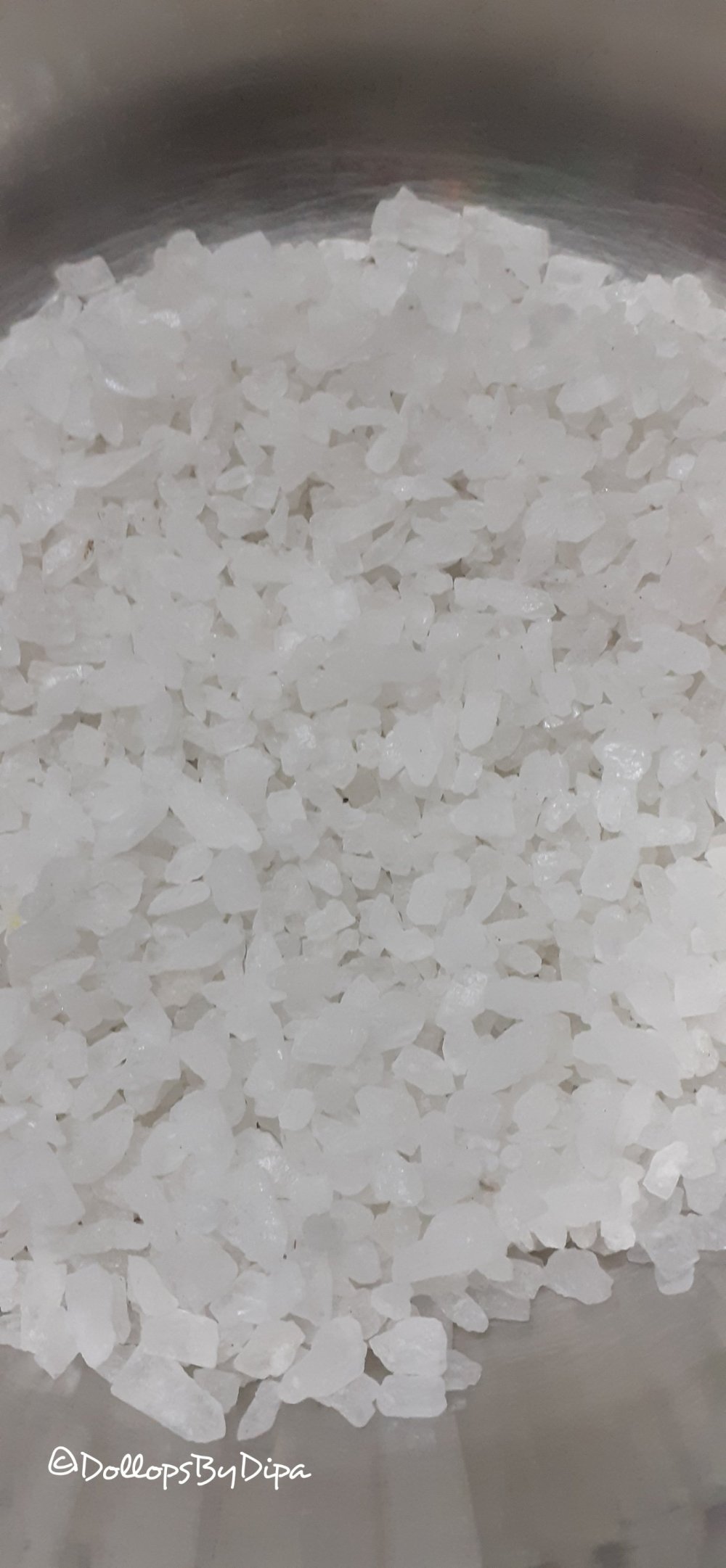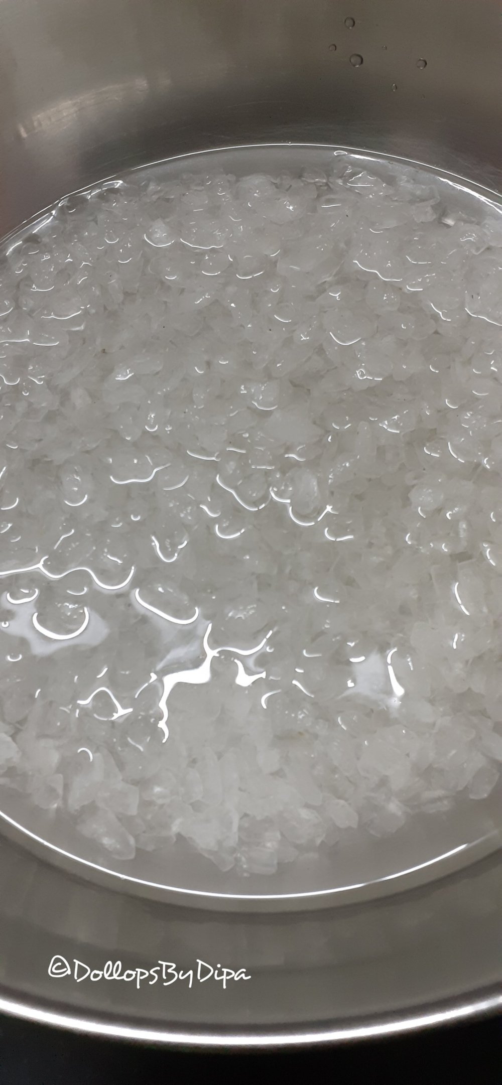 2. Now in a broad pan ,add rock sugar and add water till sugar is submerged in it.
