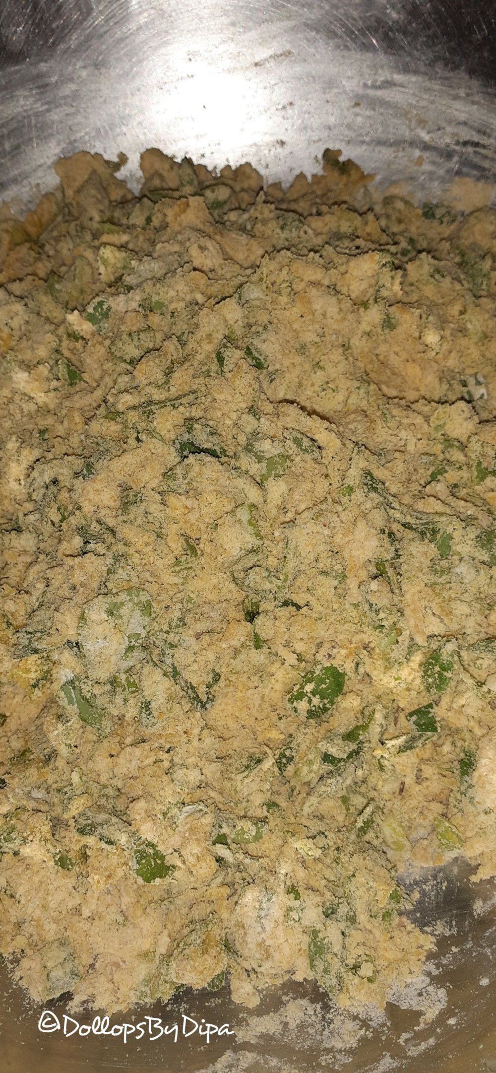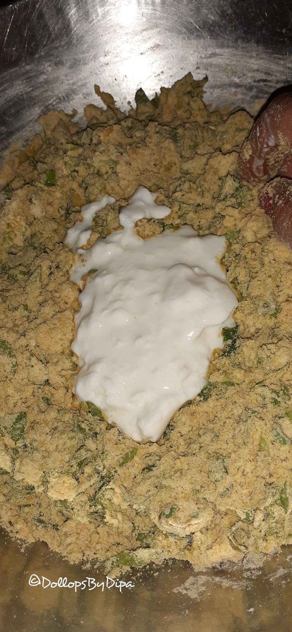 1. Add all ingredients except curd in wheat flour and mix well in crumbly texture.
