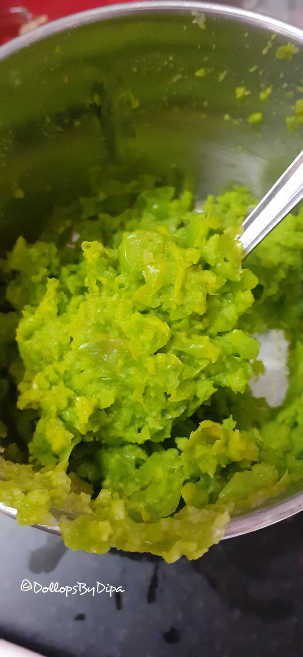 2. Then grind it, spare some boiled peas.