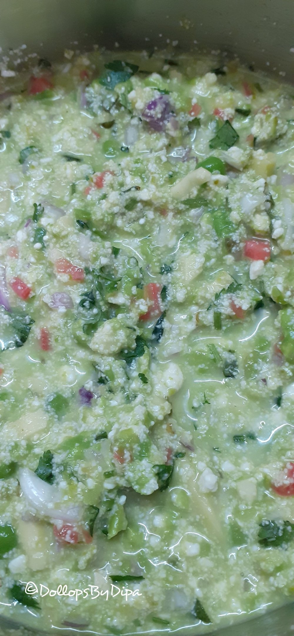 3. Now in other vessel, add all ingredients along with grinded peas and combine well. Add little water to prepare thick batter. Cover and rest for 15 minutes.