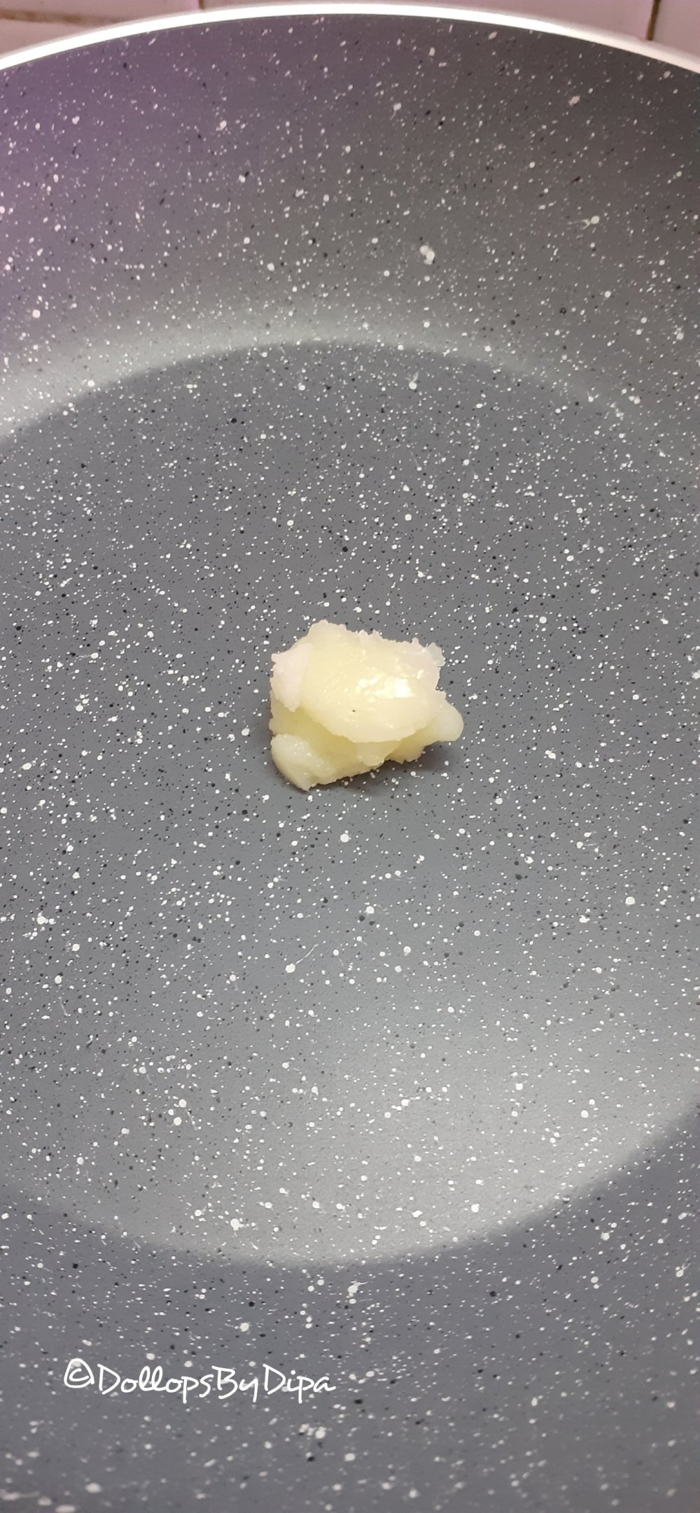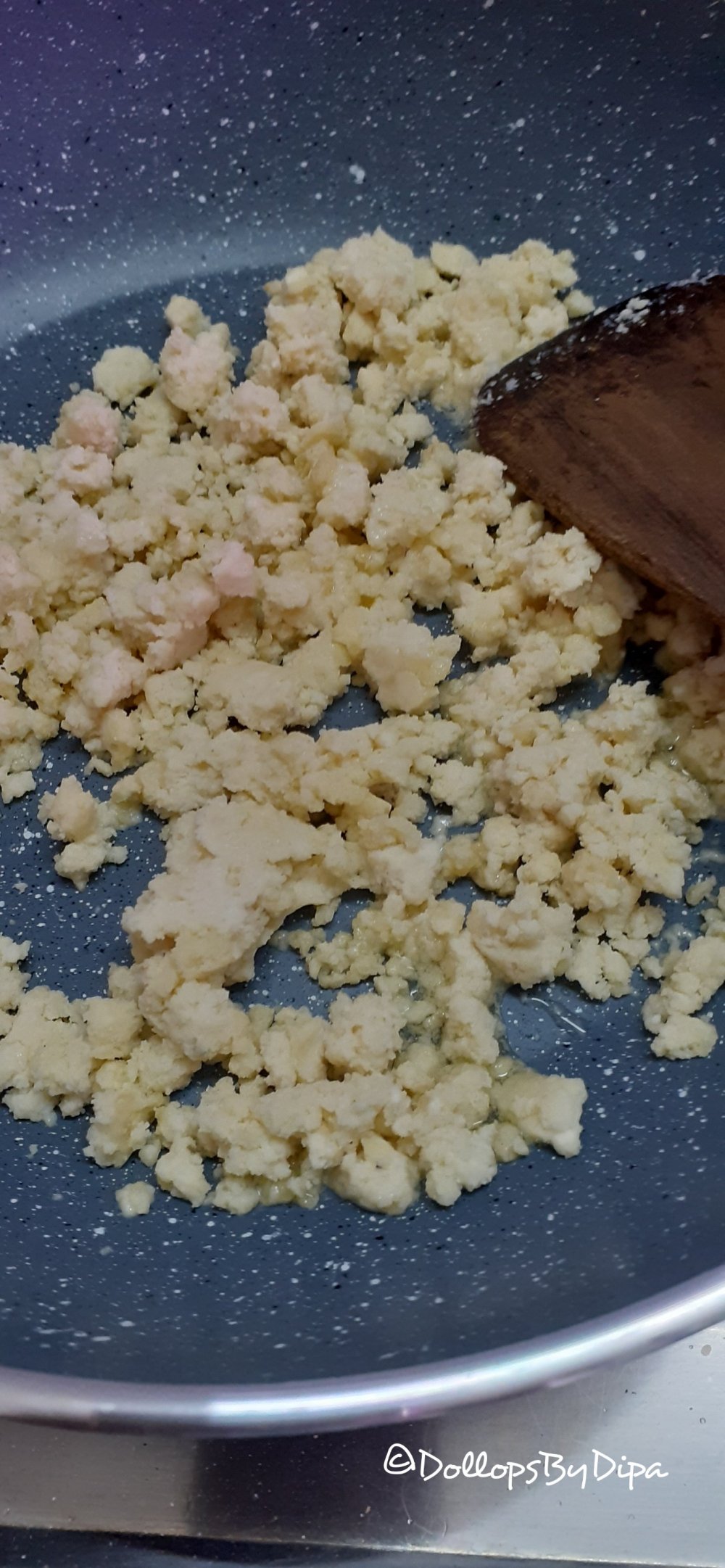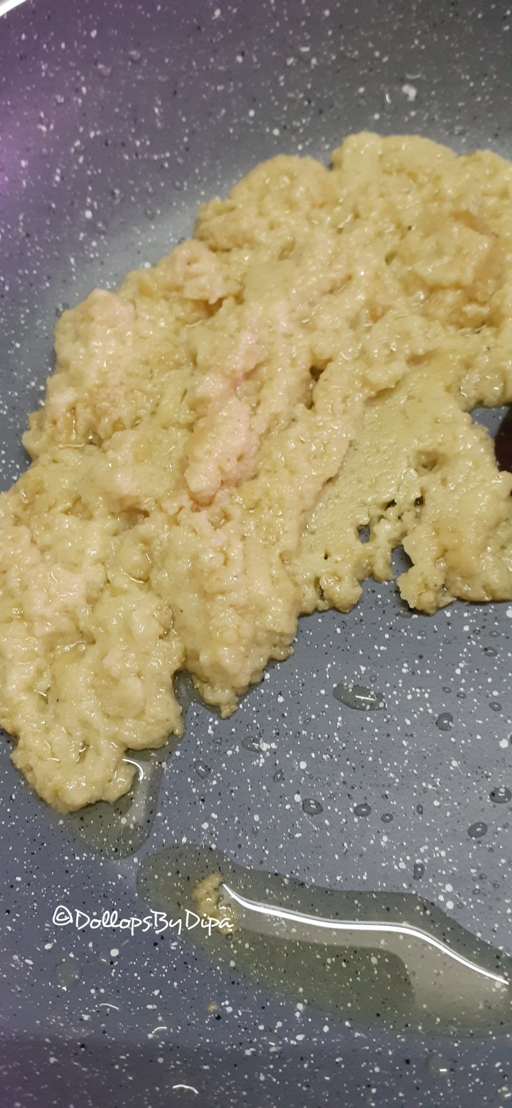 2. Heat 1 tsp ghee in a pan and saute khoya till it becomes pink. Transfer it to a plate.