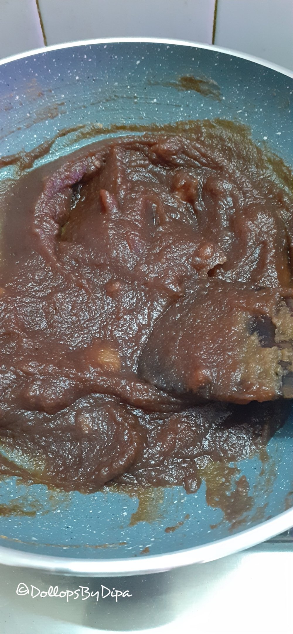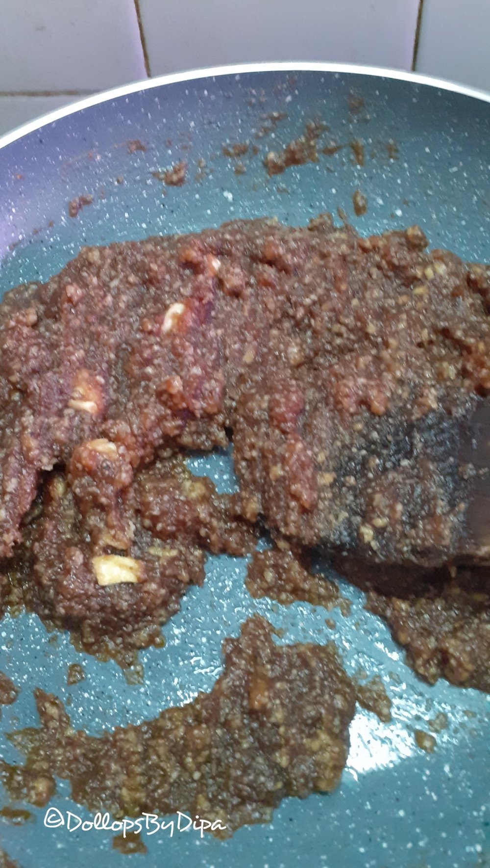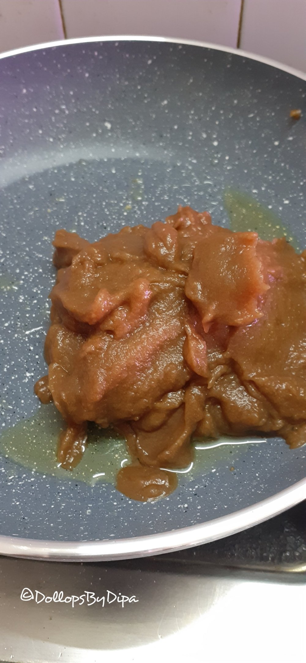 3. In the same pan, add one tsp ghee, add chikoo paste and saute it for 3-4 minutes.