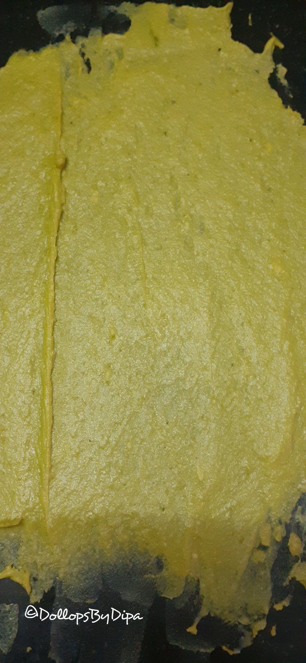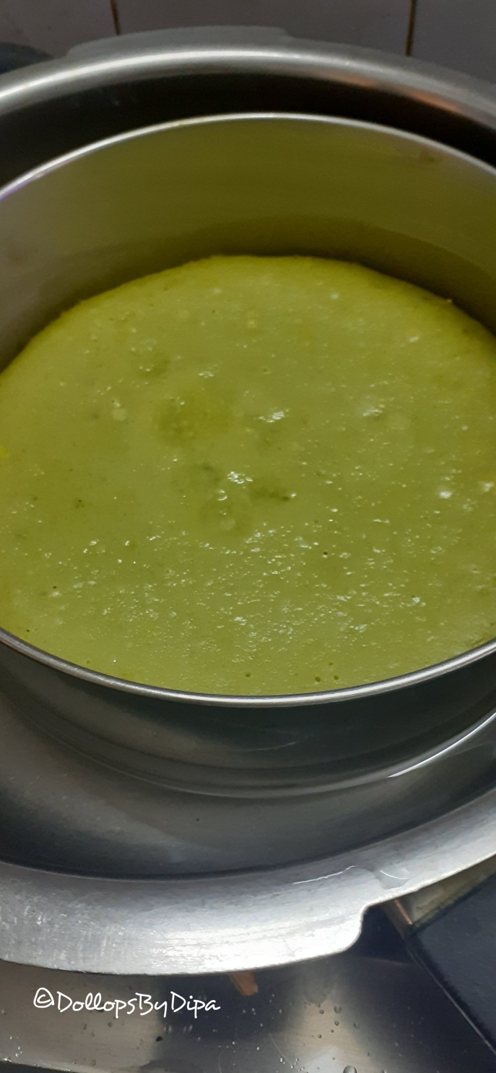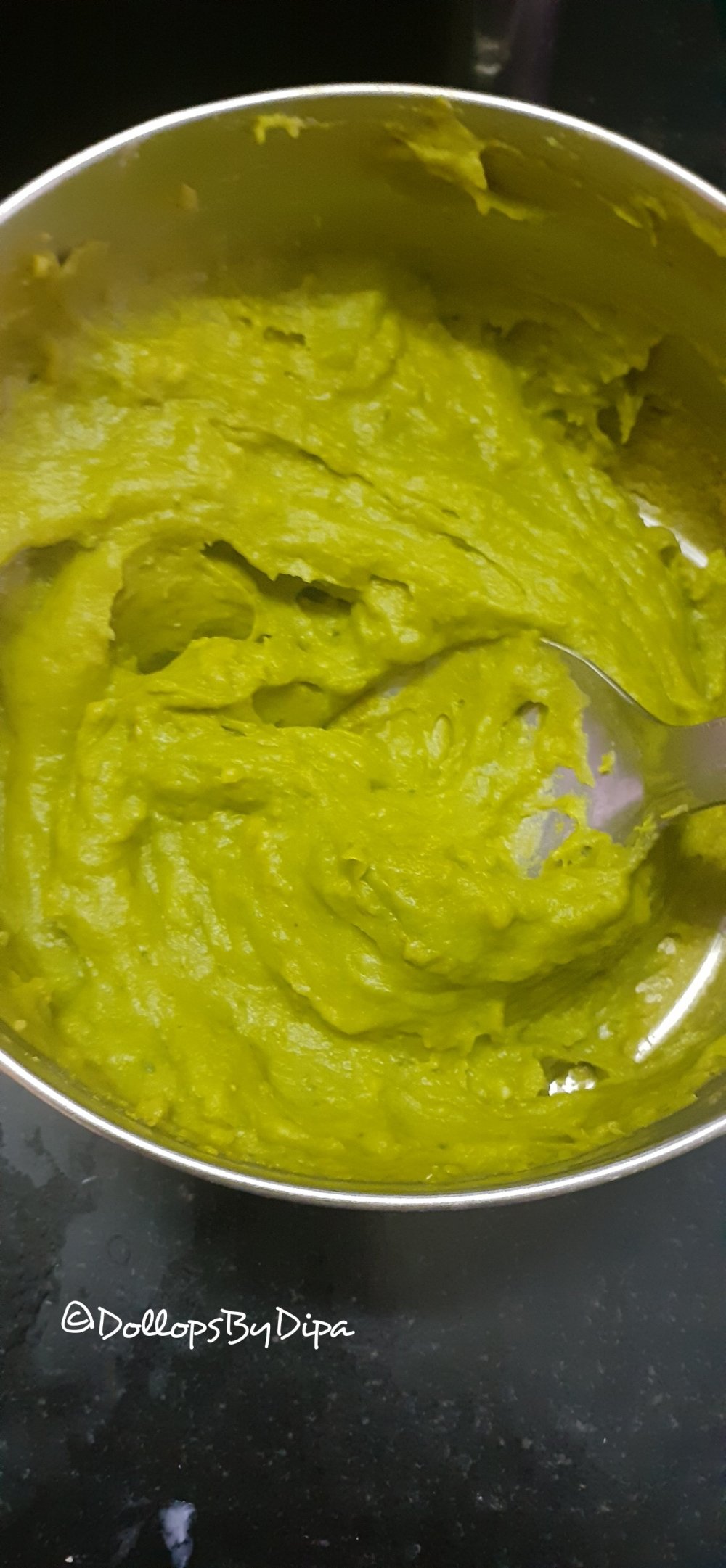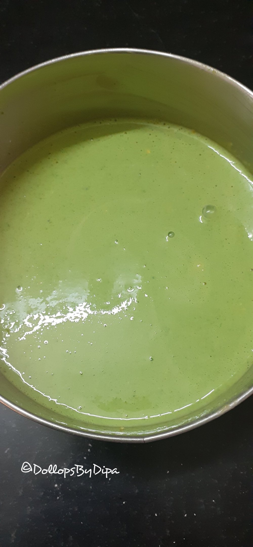 1. Add salt and turmeric powder to gram flour. Now add butter milk little by little and prepare lumpfree batter. Lastly add spinach puree and mix well.