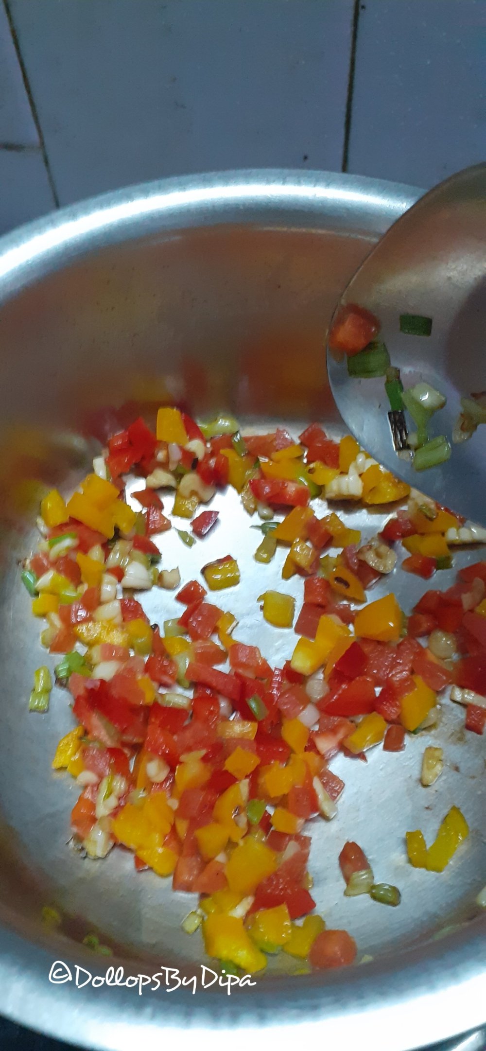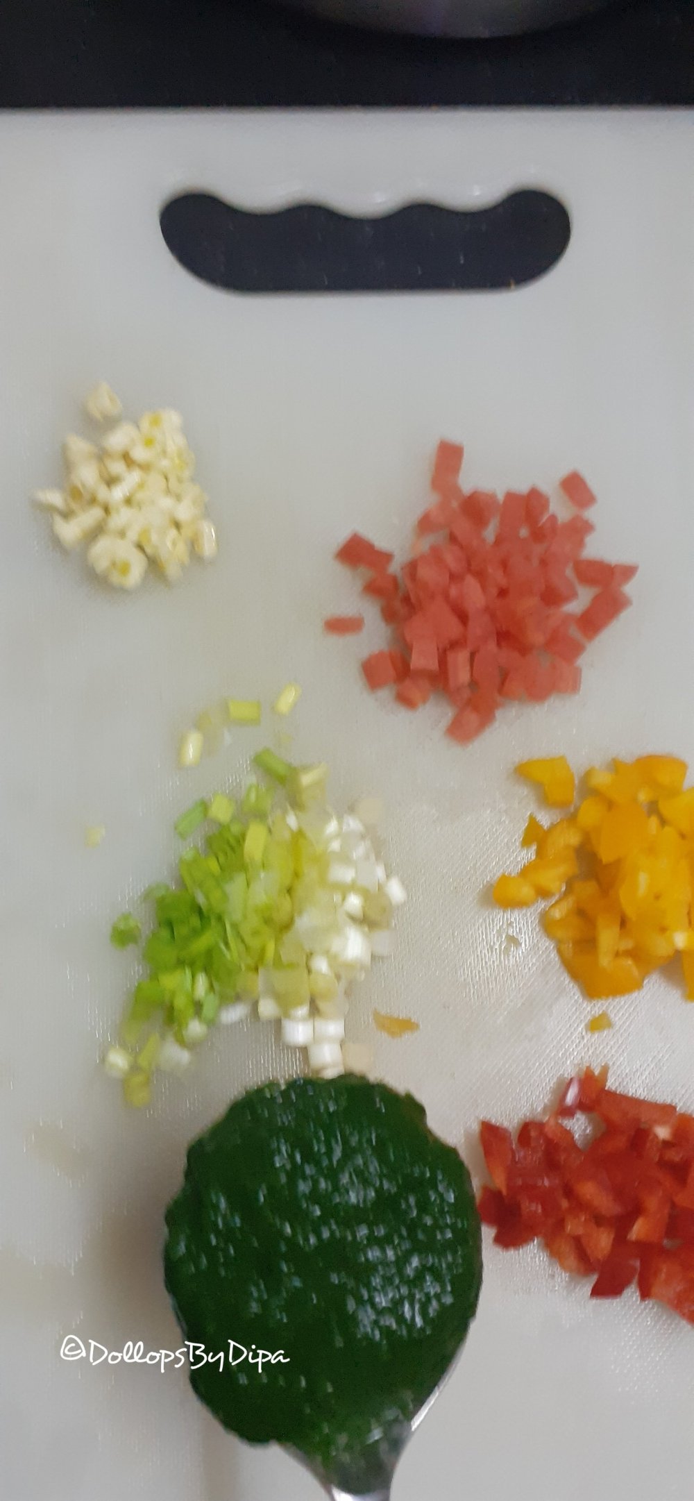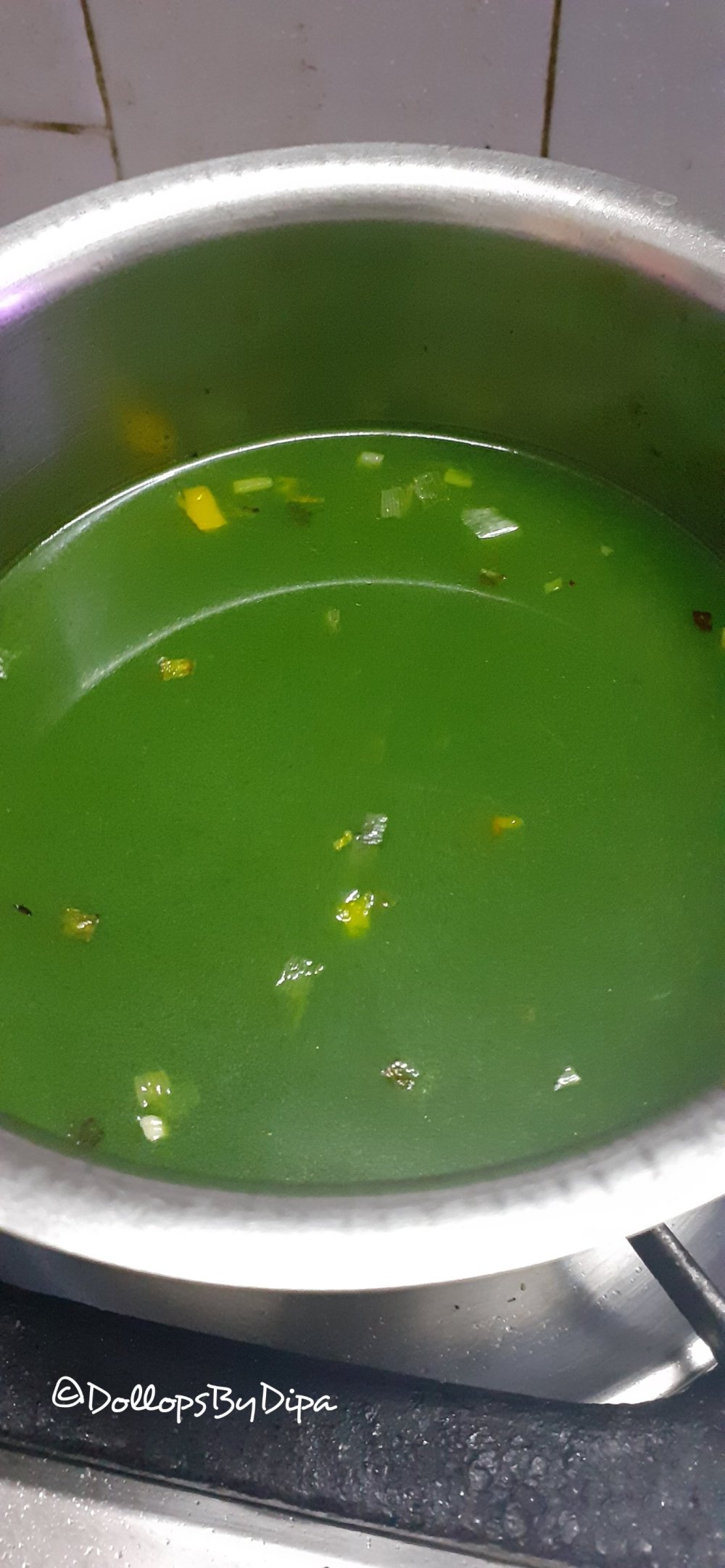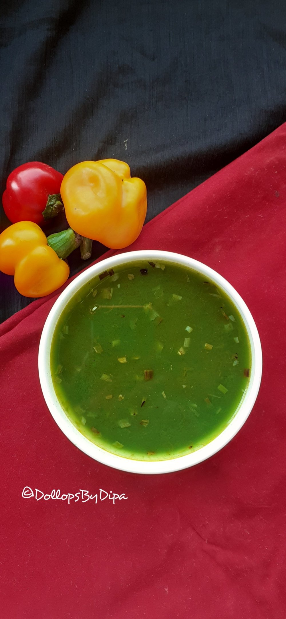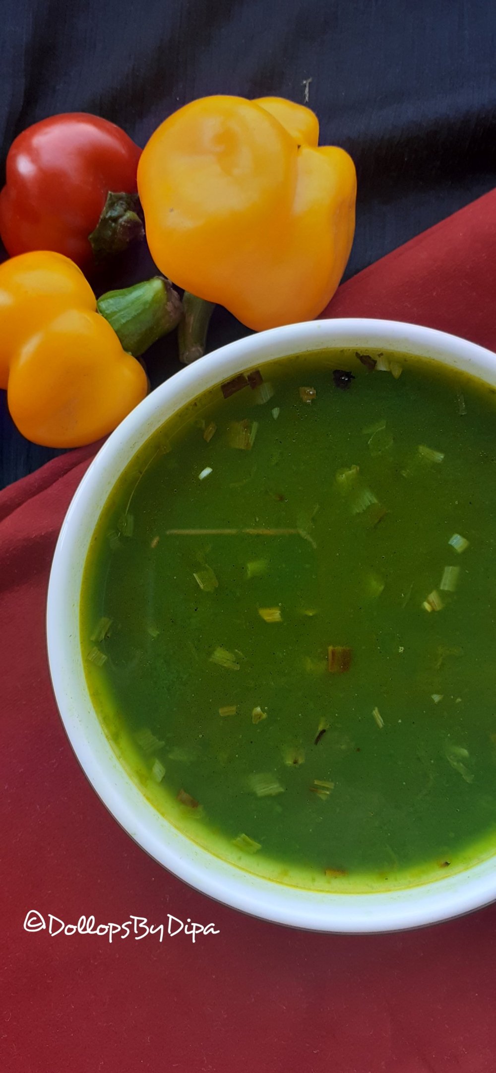 Today made spinach soup with some vegetables. A bowl full of health. This soup is not only visually beautiful and colourful, but goodness of spinach and bell peppers make this soup full of health. Garlic enhances the taste of soup.