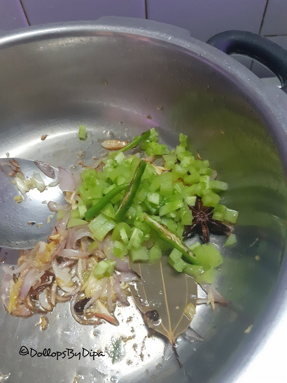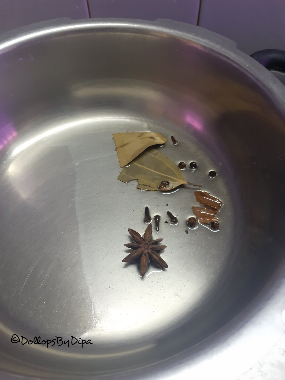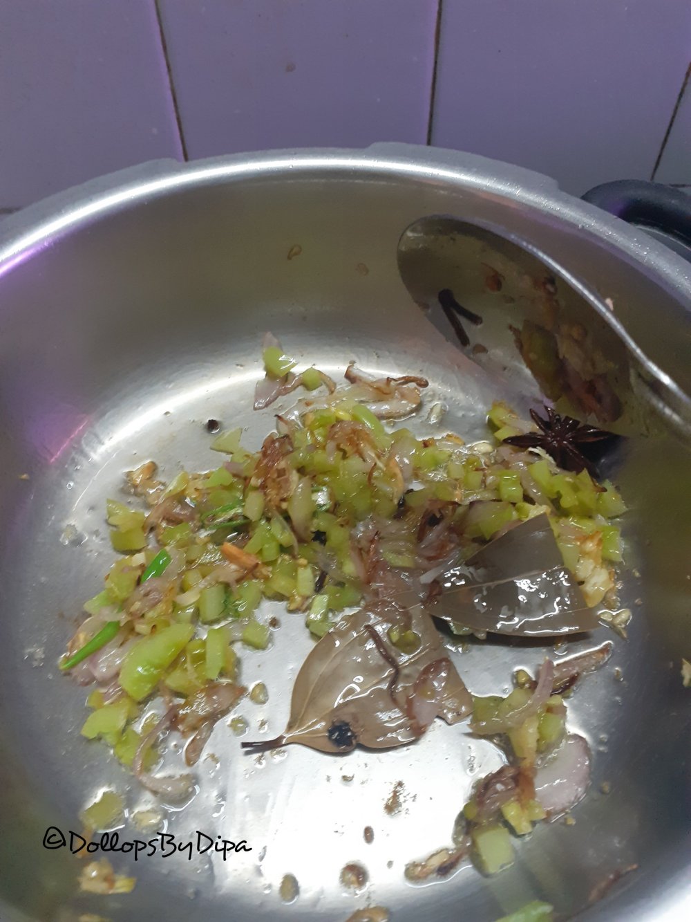 1. Wash and soak rice for 20-30 minutes. Heat ghee ,add bay leaves, star anise , cinnamon, cloves and black pepper and saute for few seconds.