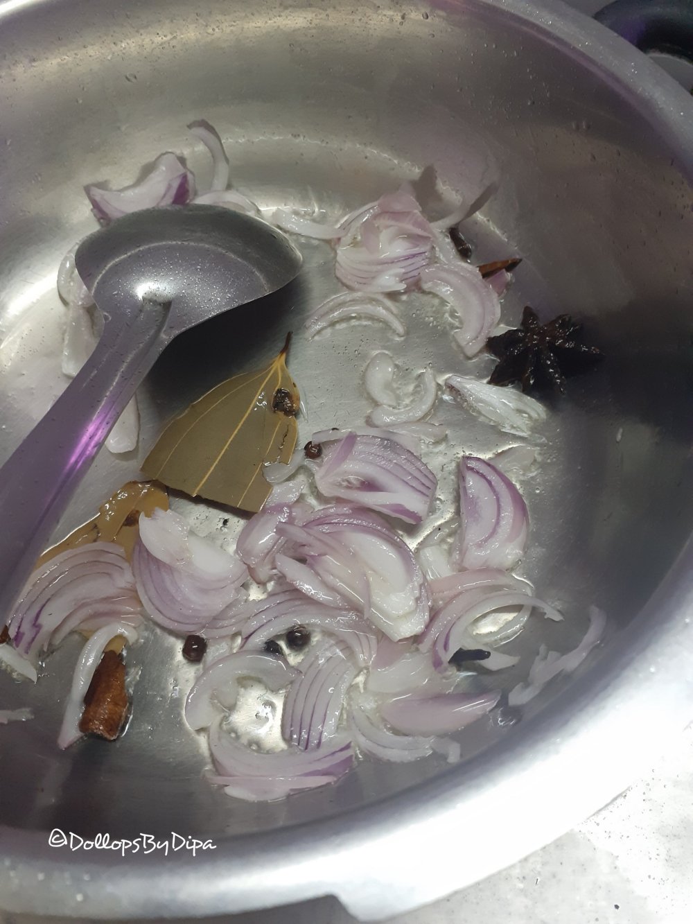 2. Add onions and start sauting it, add ginger garlic paste too.