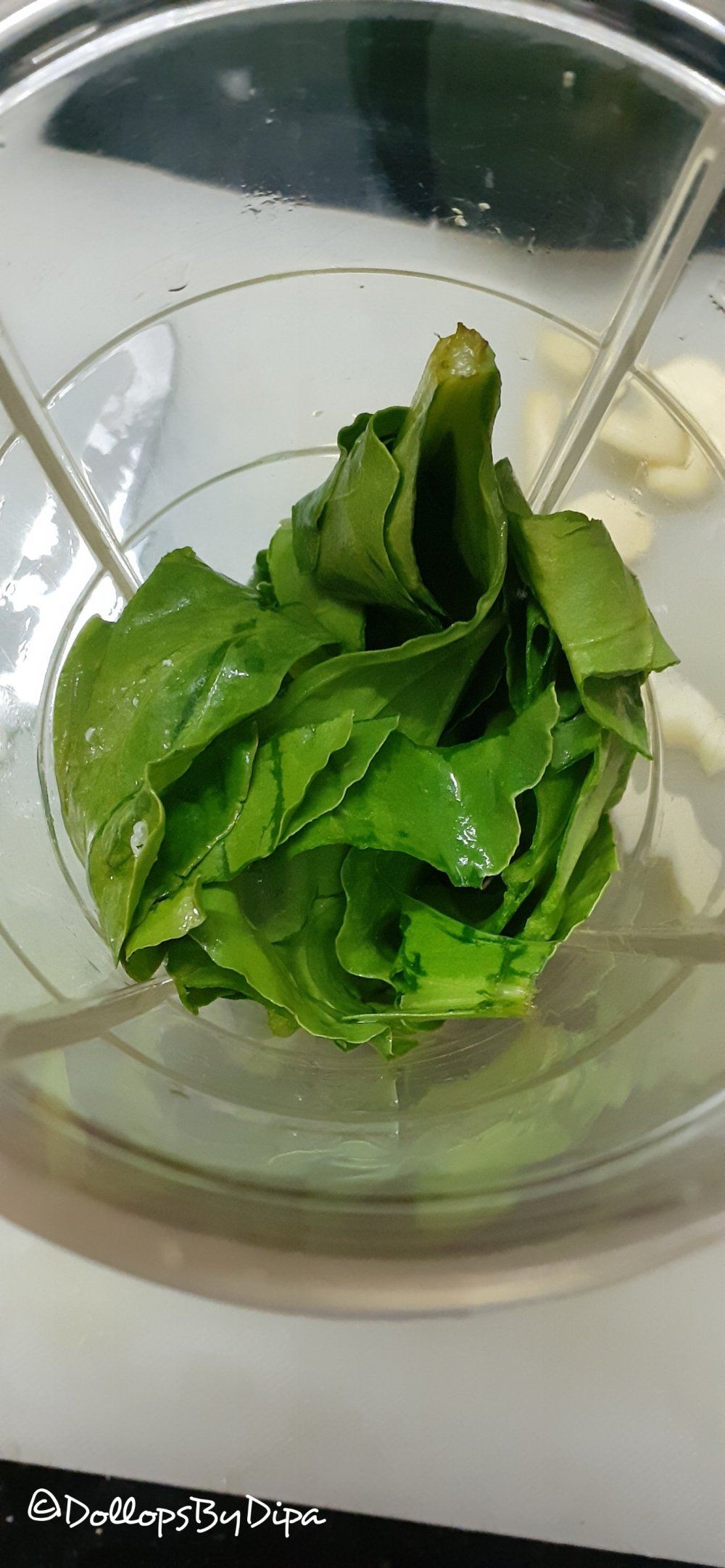 1. Add spinach into chutney jar.