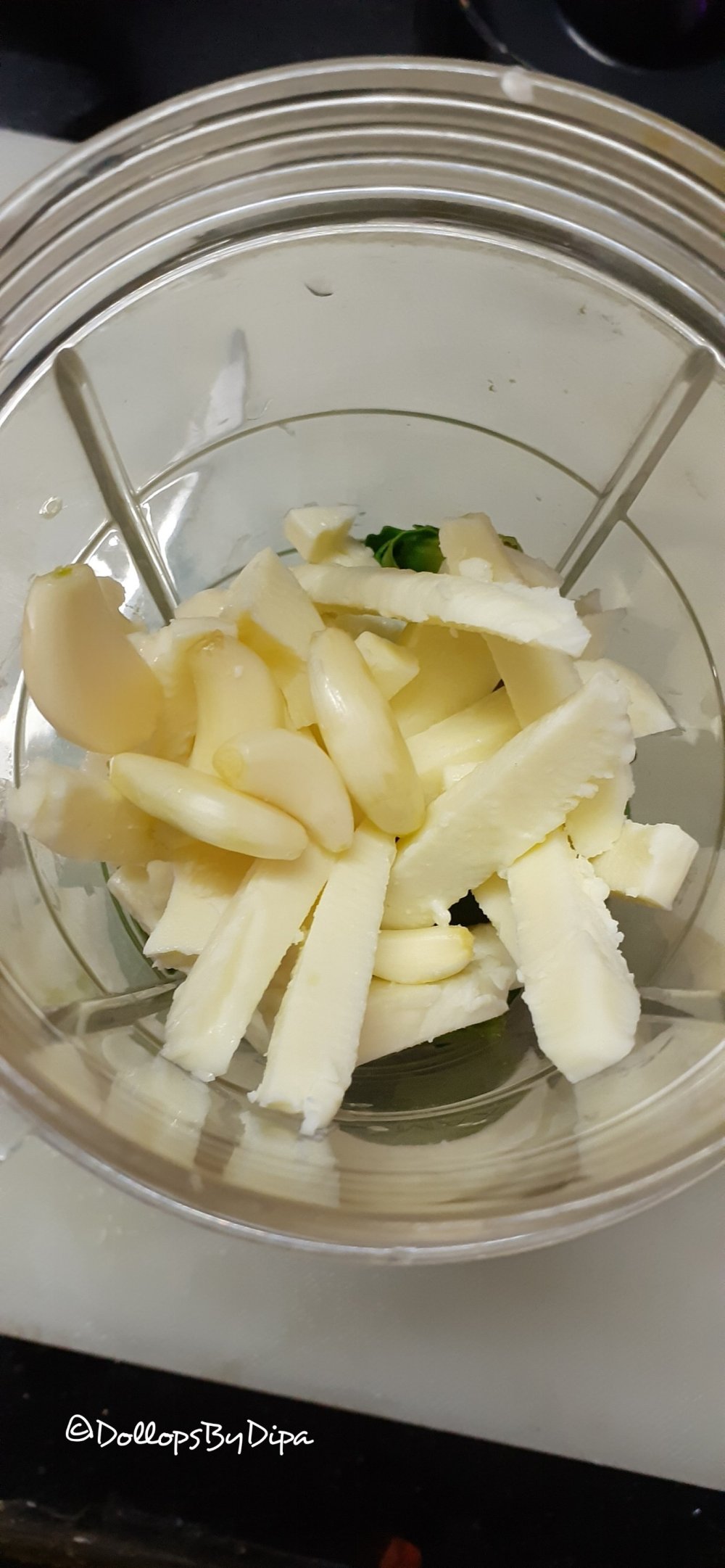 2. Then add garlic and cheese.