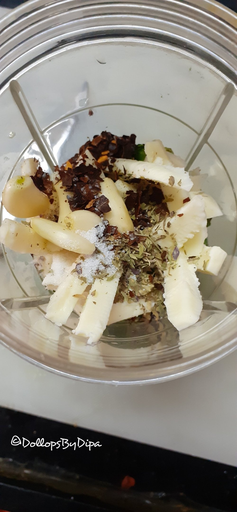 3. Also add 1 tsp red chilli flakes, 1 tsp oregano and salt to taste.