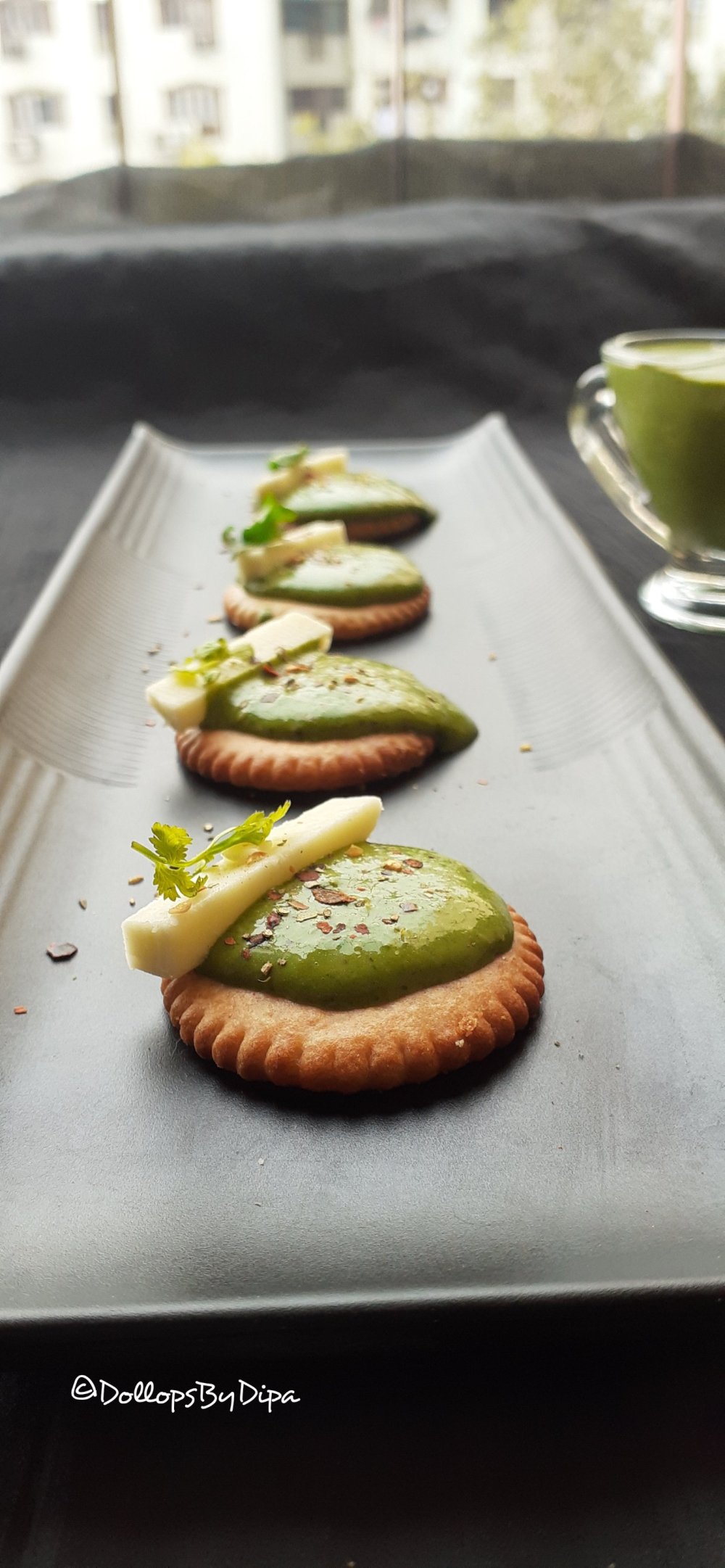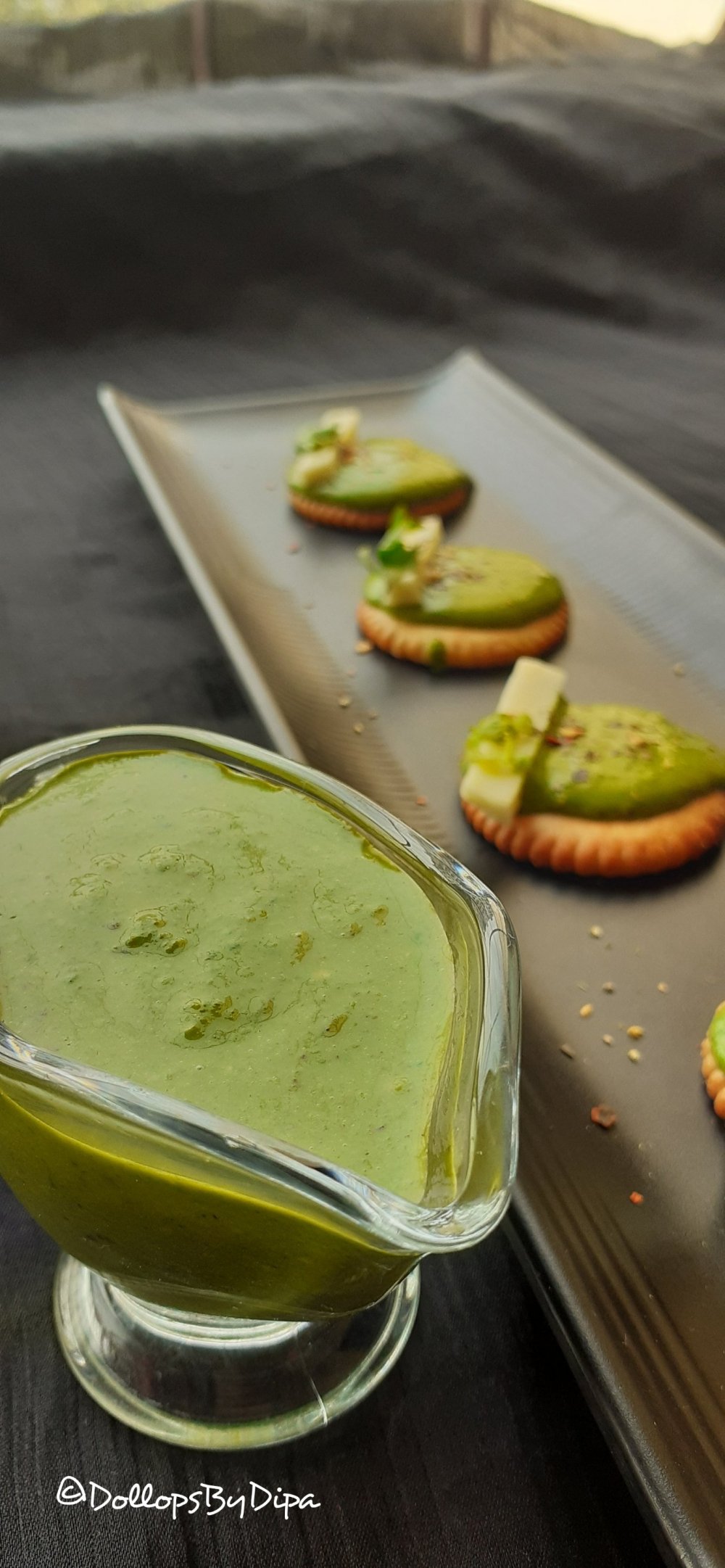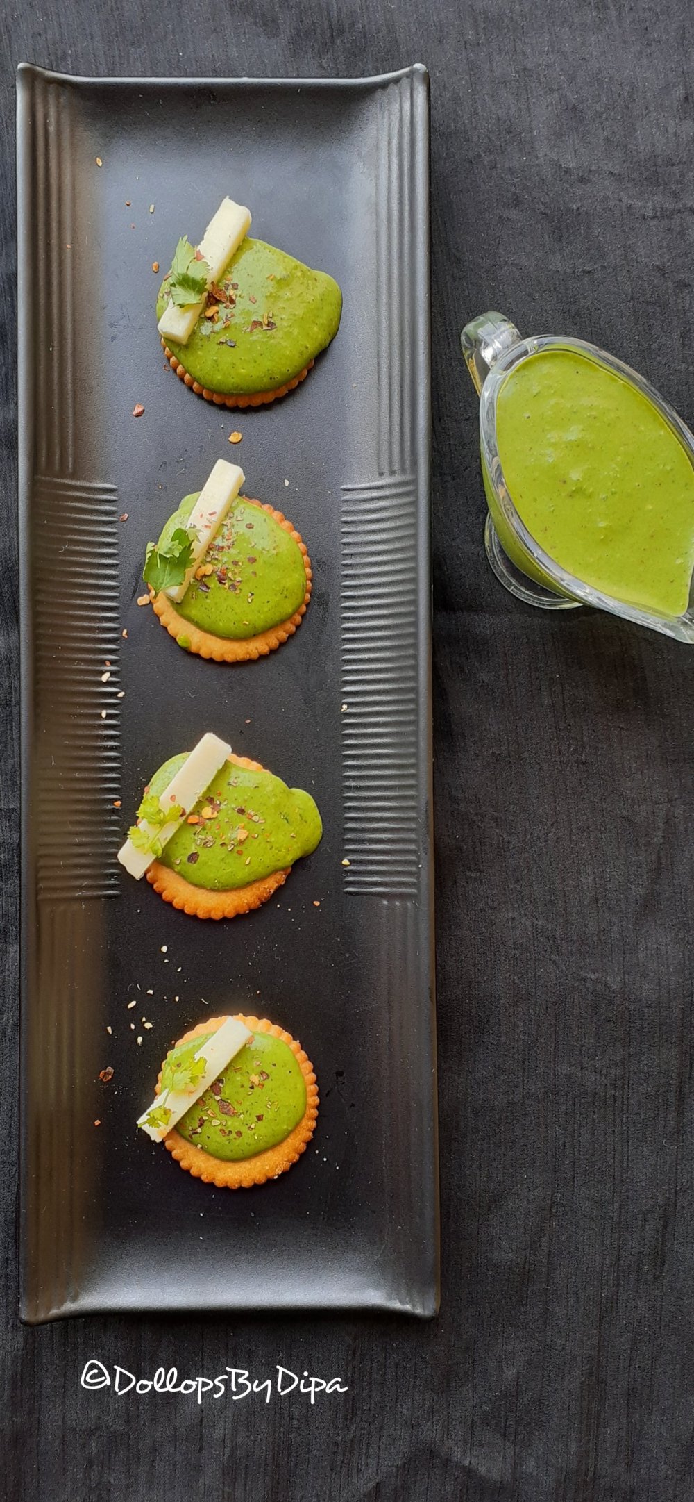 Monaco Bites , Monaco toppings are very easy and popular bite size starters and quick snack option for anytime hunger. Here, I have made a dip with cheese and spinach. I used Monaco biscuits, you can use any crackers or biscuits of your choice.
