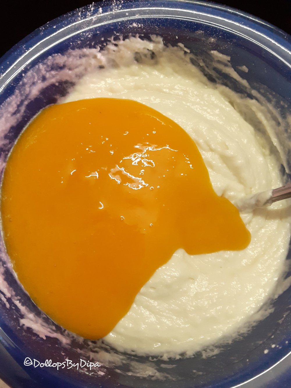 4. Lastly add mango puree, mix and rest the batter for atleast 15-20 minutes.