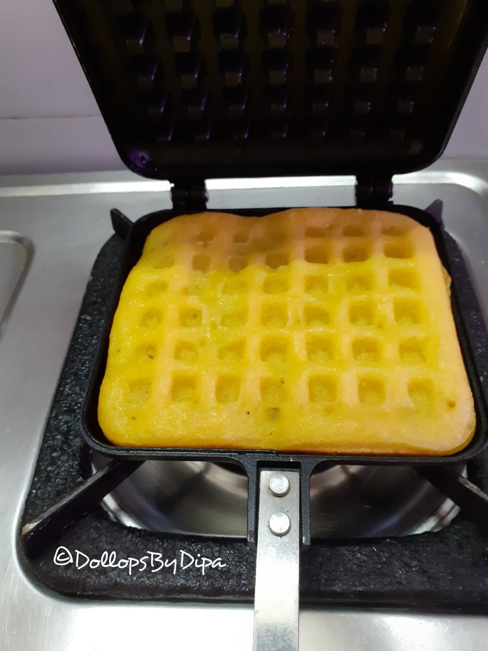 When we got Mangoes in abundance in summers ,mango mania drives on our mind. Here are mango flavoured waffles prepared on gas stove waffle iron.