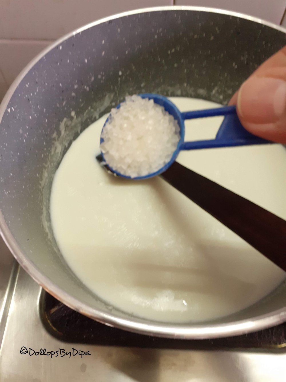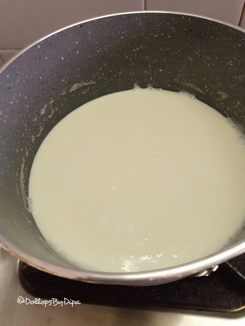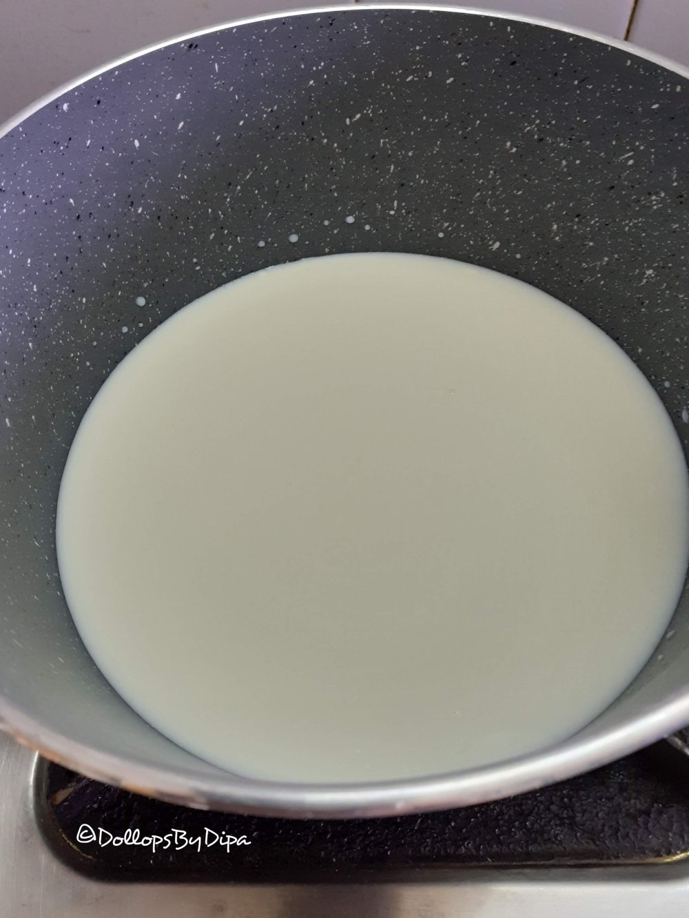 2. Pour milk in a thick bottom vessel and bring it to boil, once it comes to boil, turn off the heat to low.