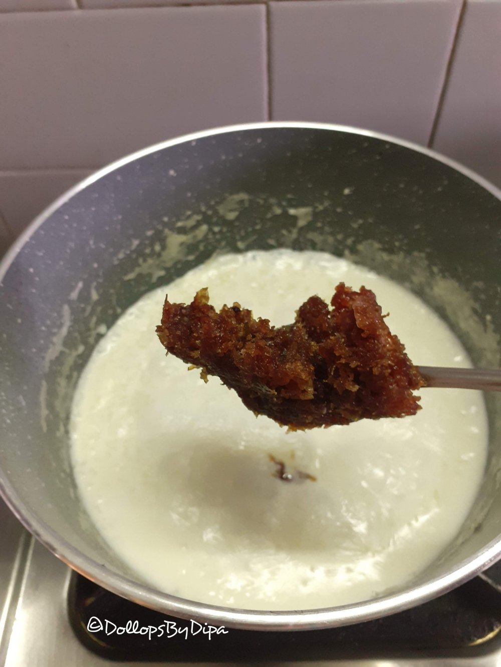 5. Add Gulkand , mix well and turn off the heat. After it becomes warm , add 1 tbsp rose syrup and mix well.