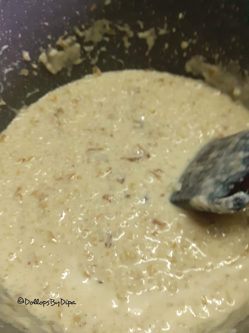 4. As the rice will cook, our phirni also becomes thick. Now add sugar and cook for a few minutes.