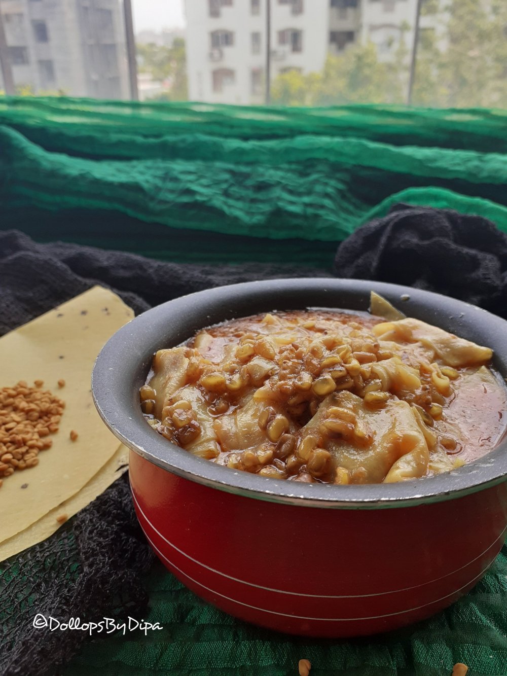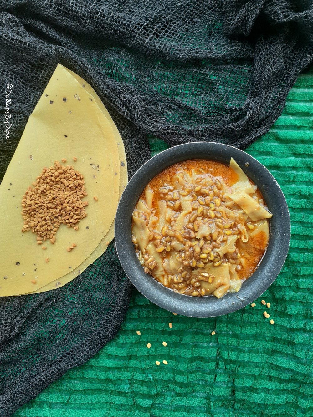 This is a very quick and easy recipe which is majorly consumed by jain community. It is prepared by fenugreek seeds and papad. So it can be prepared without any green vegetables and with normal basic spices. So when your vegetables are out of stock you can choose this option and it is prepared in few minutes.
